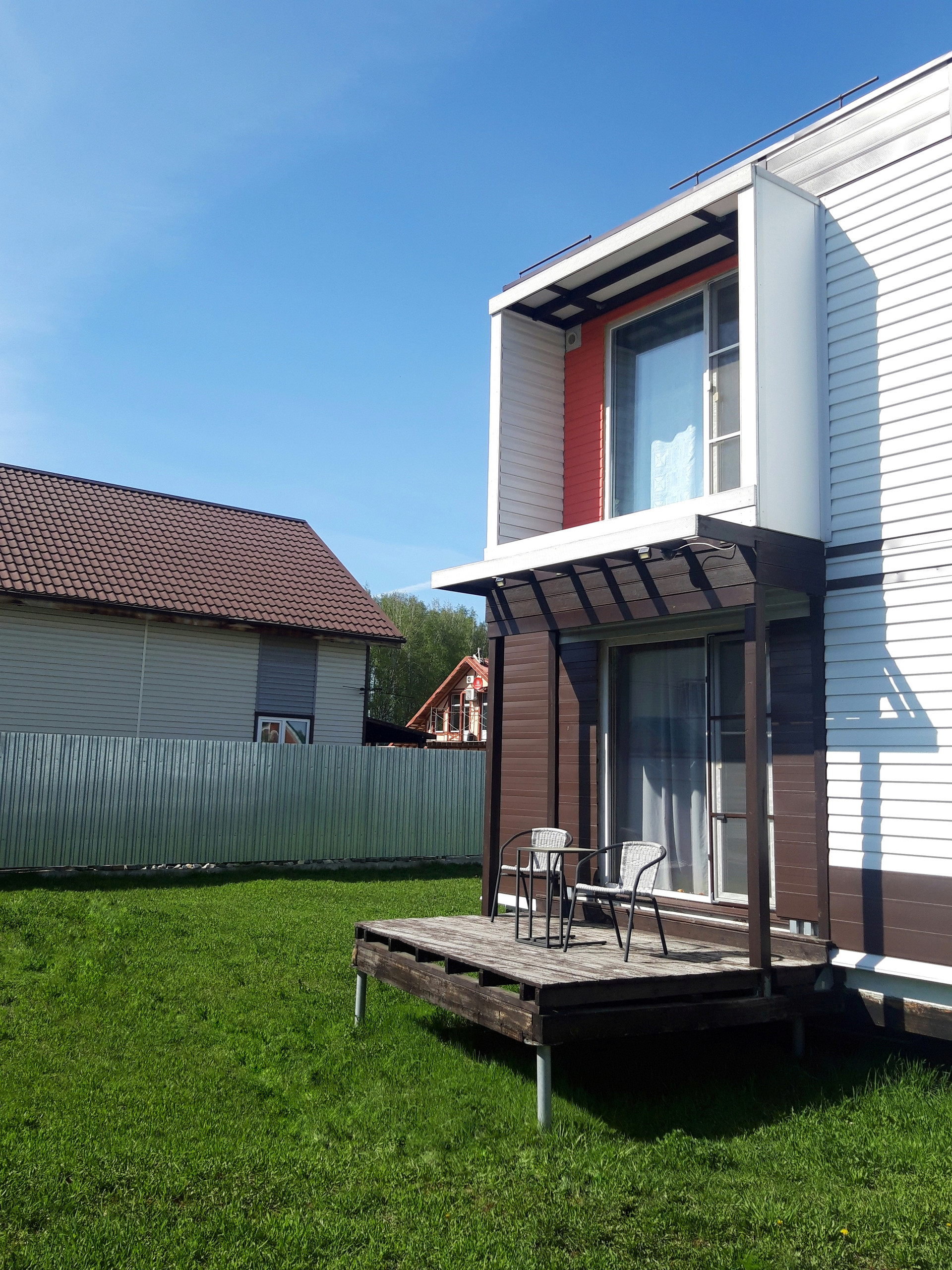 2 этаж: спальня, гардеробная (смежная комната), с/у. Гараж металлический, утепленный. Городской и школьный автобусы. Прописка. Дом энергосберегающий из сэндвич-панелей с пенополиуретаном. Отопление - электрокотел ("умный дом" - управление через смартфон) , горячая и холодная вода, канализация. Откатные ворота. Смонтирован фундамент для пристройки ещё двух комнат. Ламинат и кафельная плитка + теплый пол (кухонная зона, коридор и санузлы). Стены под шпатлевку и окрашены в белый цвет, в санузлах стены подготовлены под кафель. Дому и гаражу требуются небольшие строительно-отделочные доработки. Возможна продажа с мебелью и бытовой техникой. В доме никто не прописан. Документы все оформлены. Один собственник, без детей.