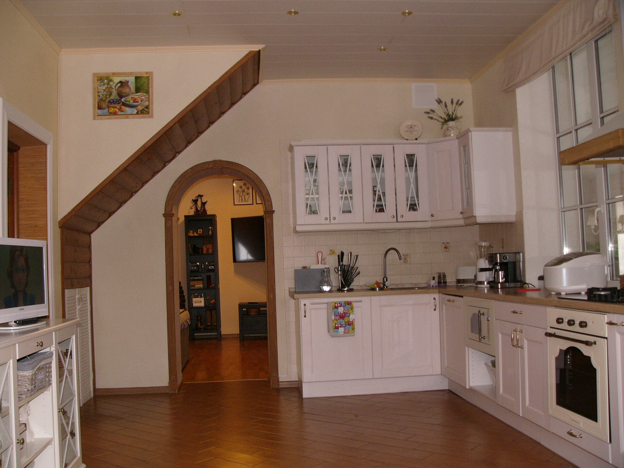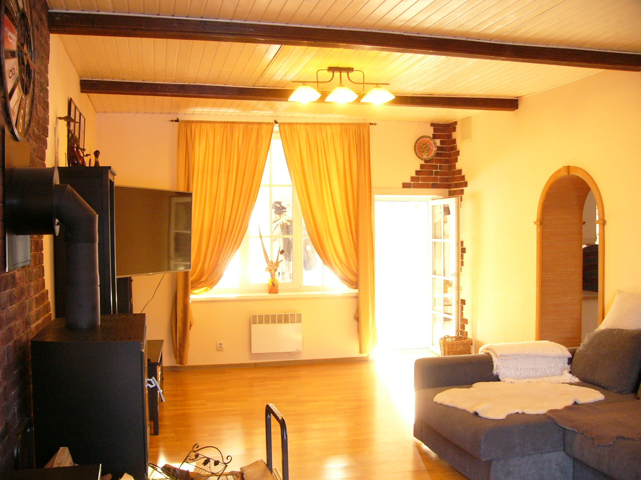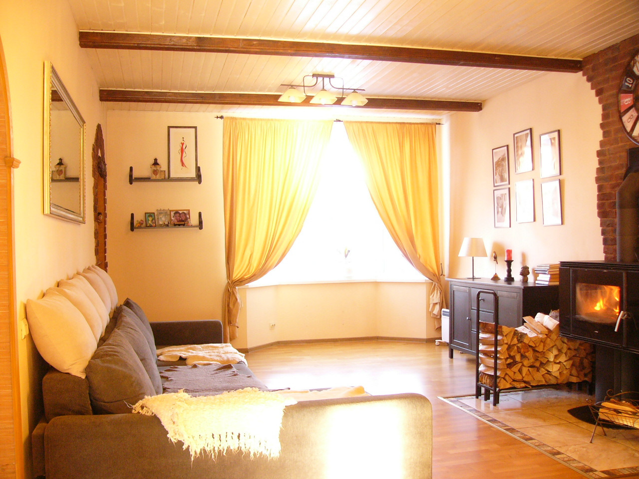 В доме камин, пол- паркет, ламинат, плиточные полы с подогревом. На первом этаже большая кухня-гостиная с эркером, 2 большие комнаты, прихожая, санузел, веранда. На втором этаже 3 спальни и санузел.