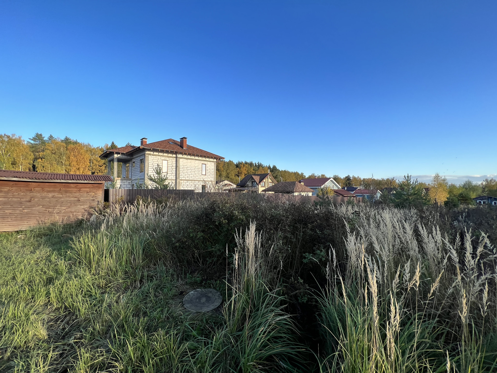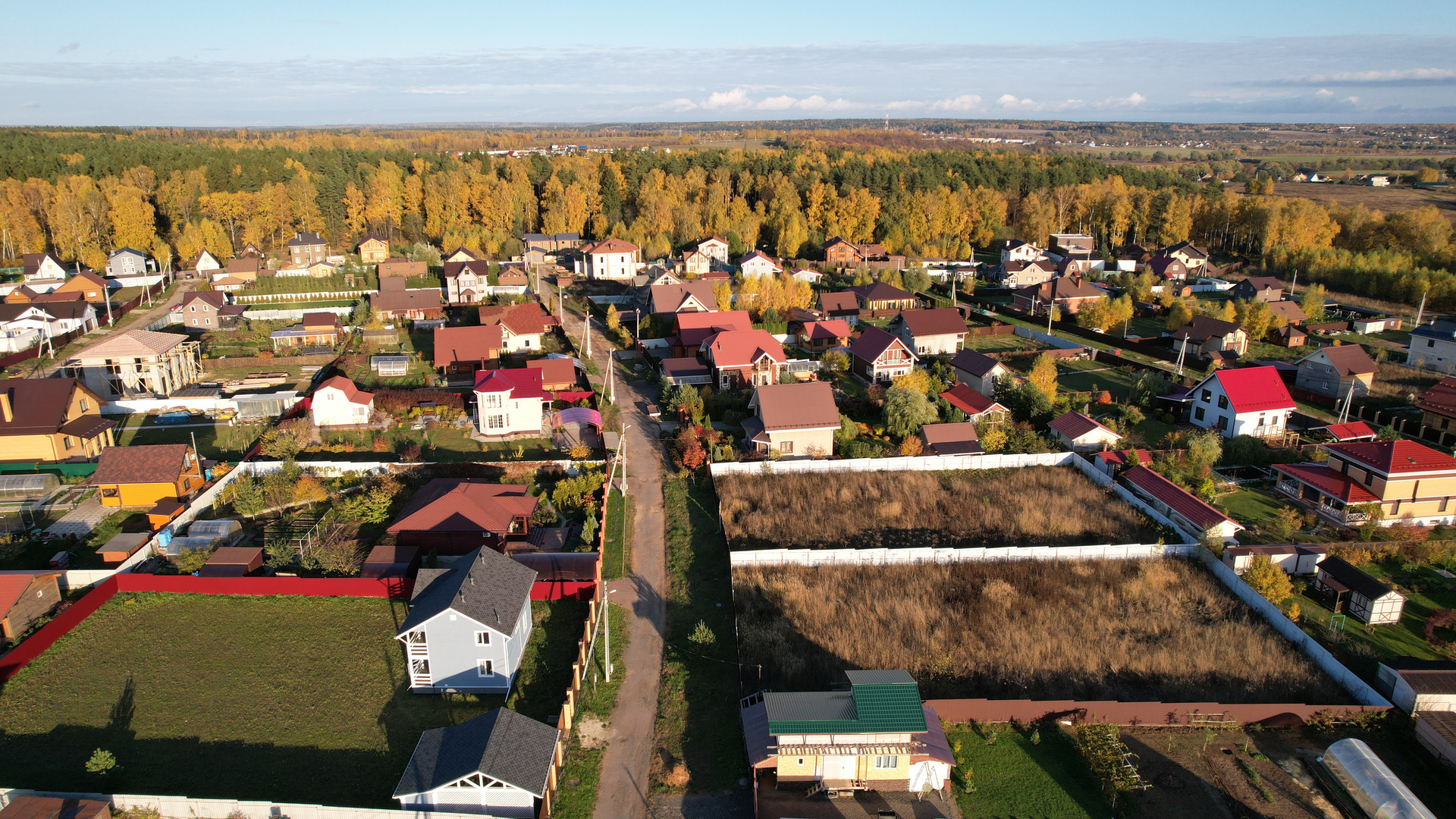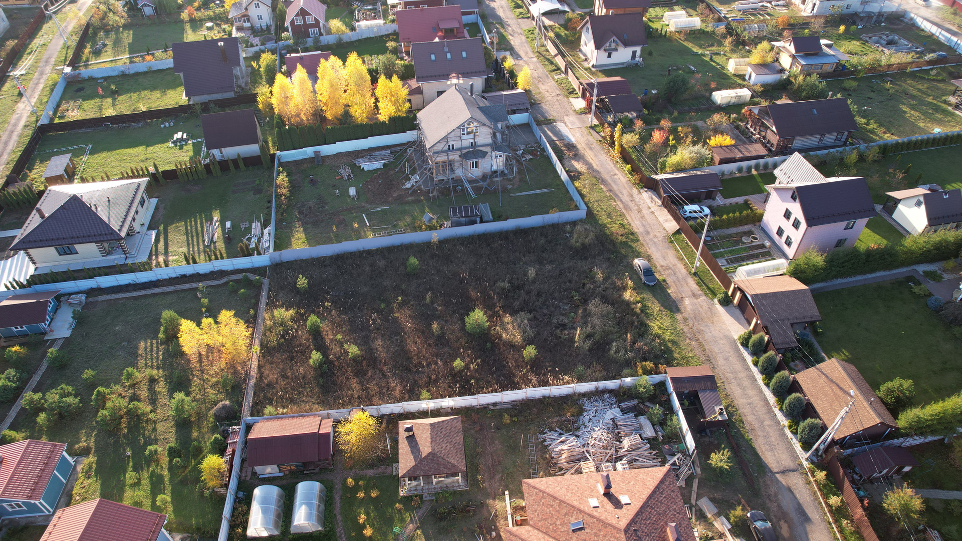 Участок сухой, правильной формы, находится на тихой не проездной улице рядом с лесом, имеет все центральные коммуникации: газ, электричество, центральная канализация, вода, асфальтированные дороги, площадка для детей, круглосуточный пост охраны, магазин, интернет.