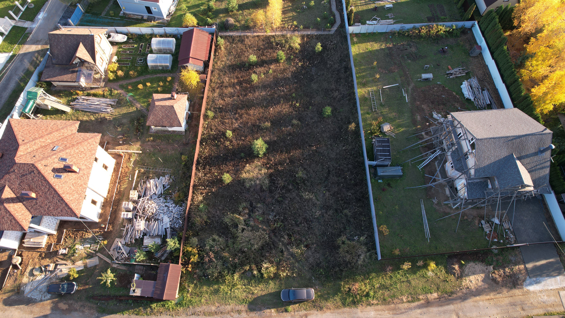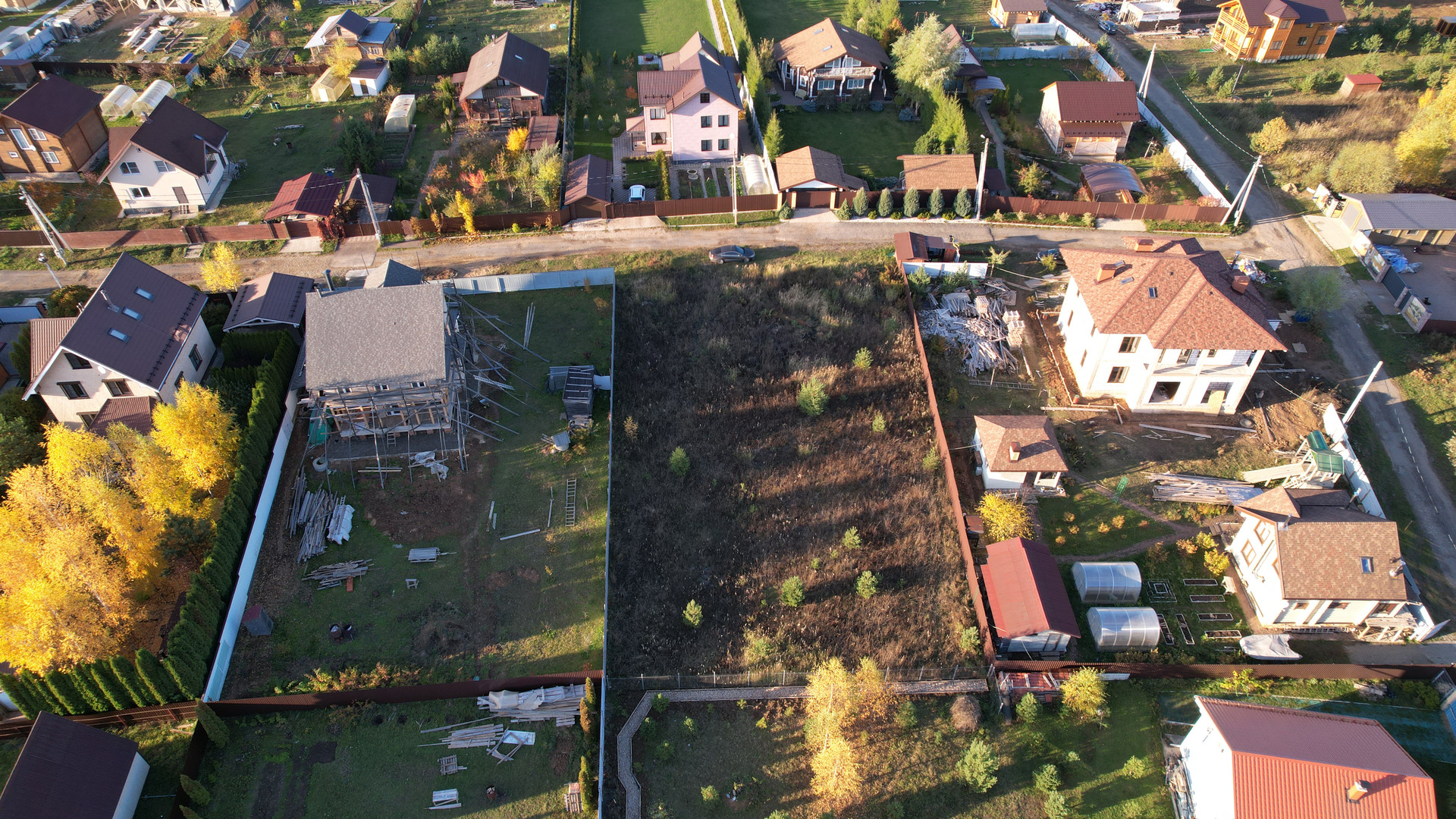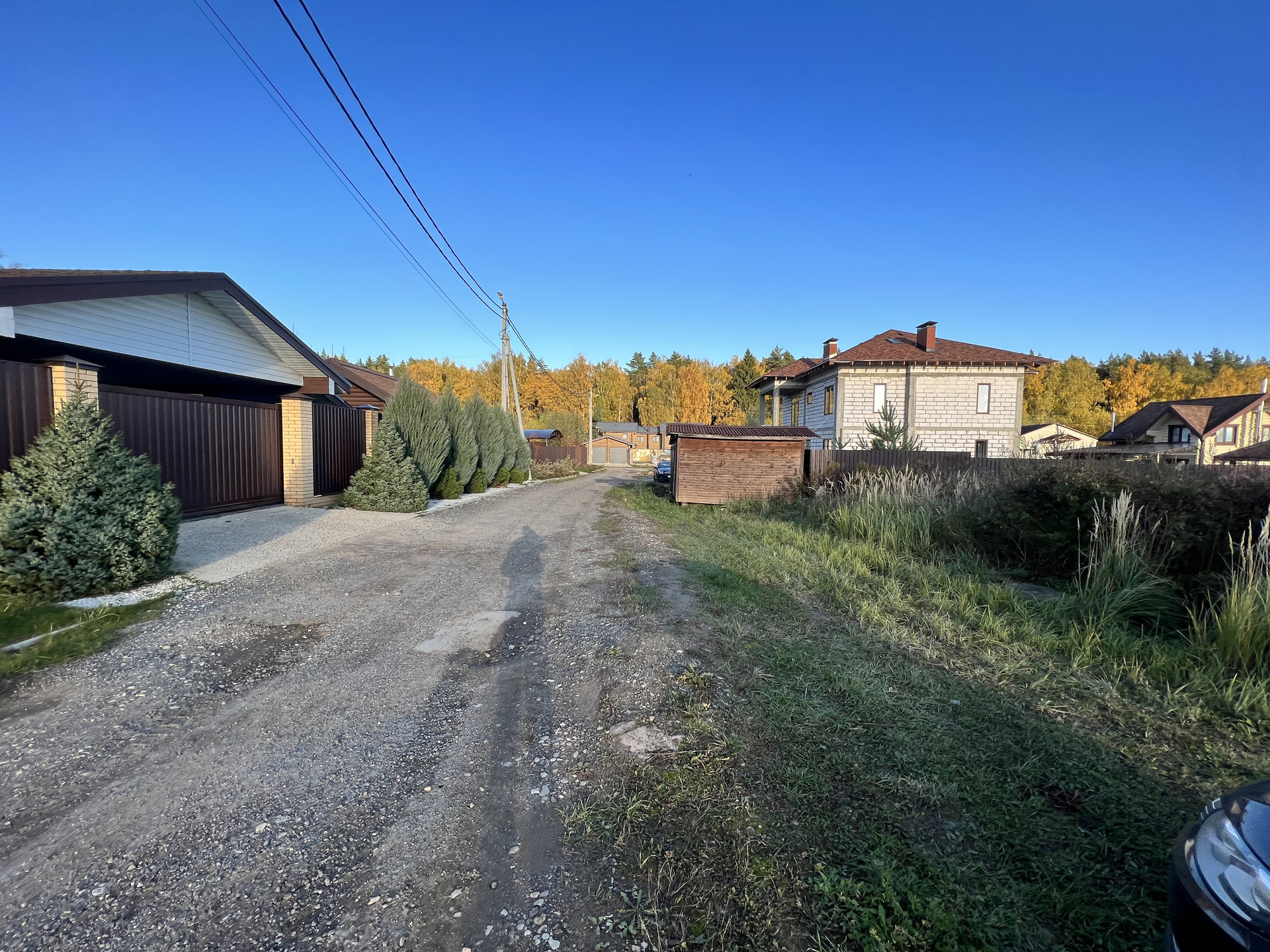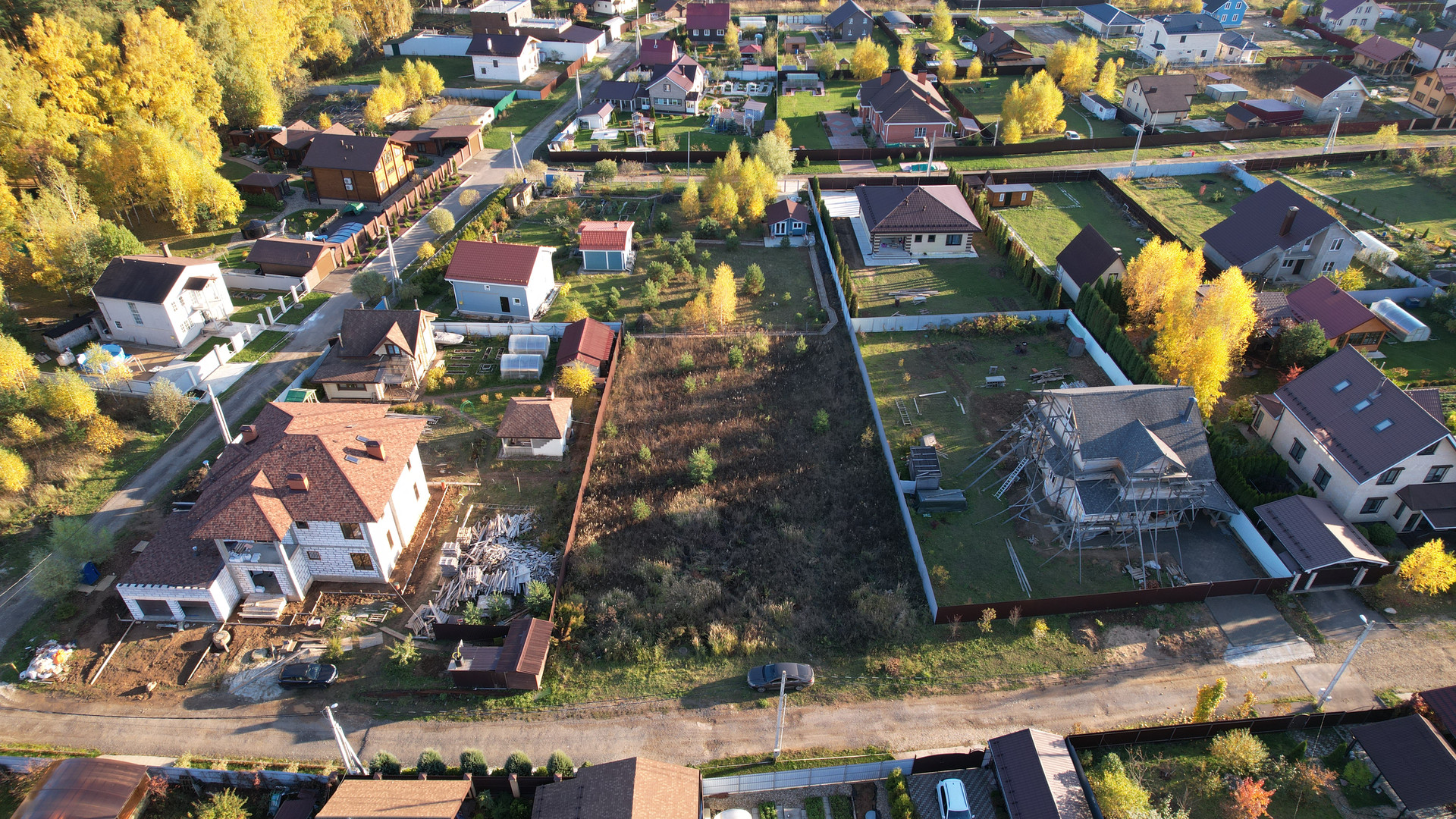 Участок сухой, правильной формы, находится на тихой не проездной улице рядом с лесом, имеет все центральные коммуникации: газ, электричество, центральная канализация, вода, асфальтированные дороги, площадка для детей, круглосуточный пост охраны, магазин, интернет.