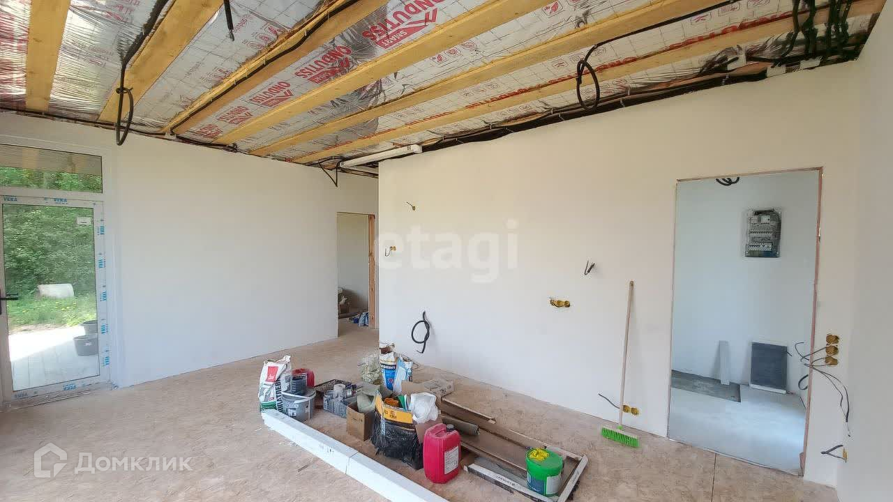 ВНУТРЕННЯЯ ОТДЕЛКА, ГОТОВАЯ ПОД ФИНИШНЫЙ РЕМОНТ Стены — гипсокартон, пол — фанера ОСБ по половым доскам и наливной пол в санузле и тамбуре, потолок — подшивка из дерева в качестве чернового потолка. Выполнена разводка электрики, воды и канализации. В стоимость входит установка электроконвекторов, а так же система теплый пол в ванной и прихожей.