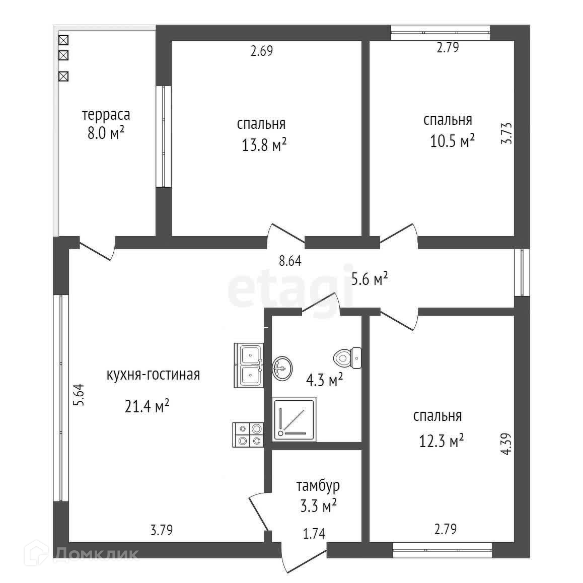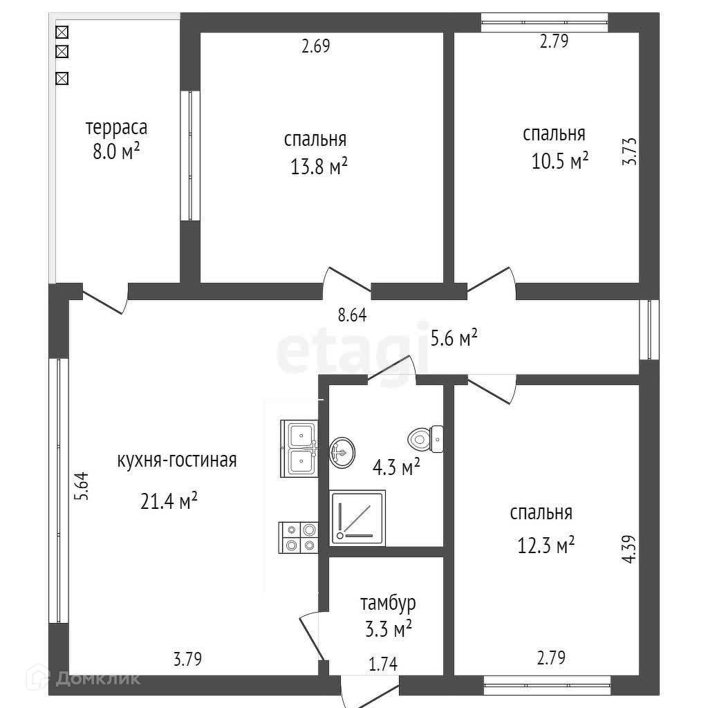 Общая площадь 90 м2