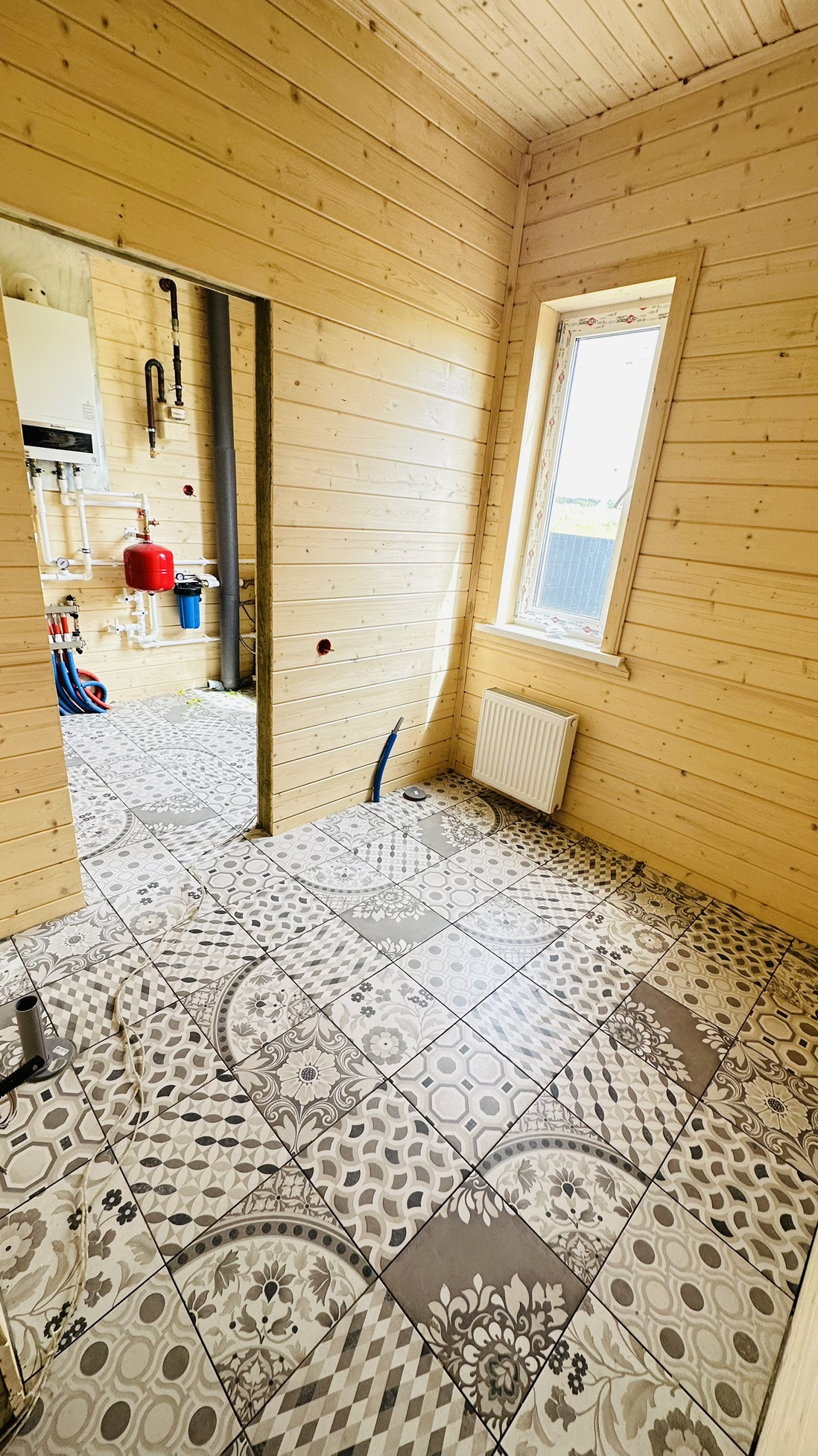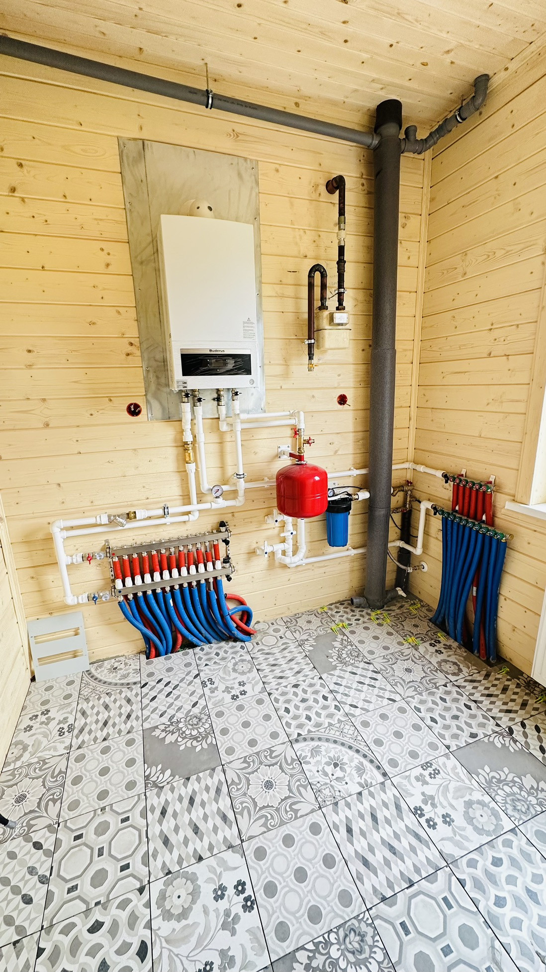 Установлен двухконтурный котел Buderus Logamax на 24 кВт.
