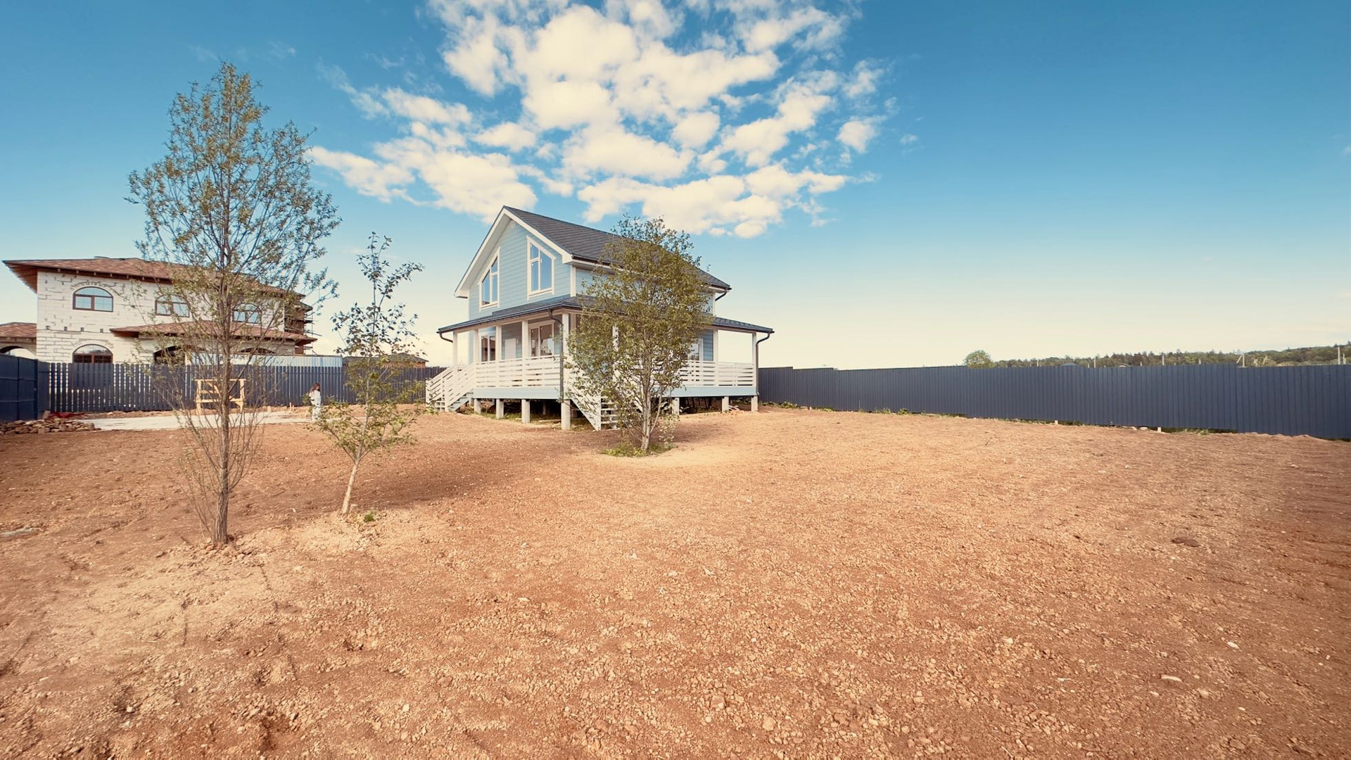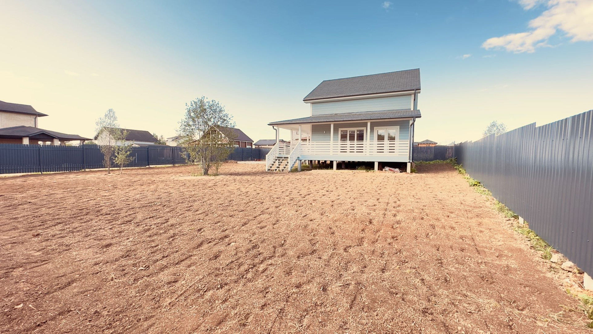 Установлен забор из штакетника.