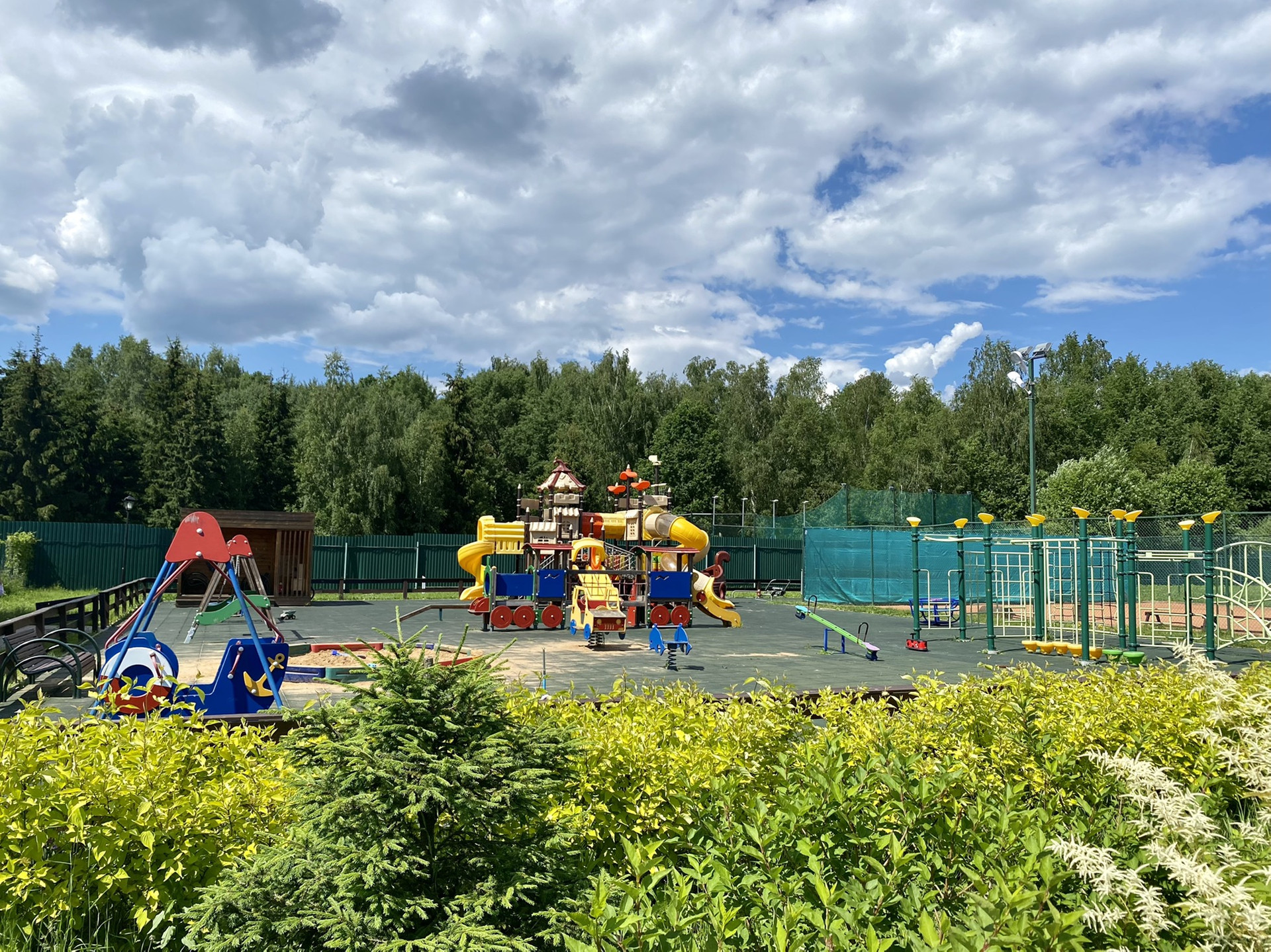 Коттеджный поселок Никольские Озера строго охраняемый, с пропускной системой и видеонаблюдением. В поселке спортивные (корт и каток) и детские площадки, прогулочные зоны с выходом в лес и к большому озеру, благоустроенный пляж.