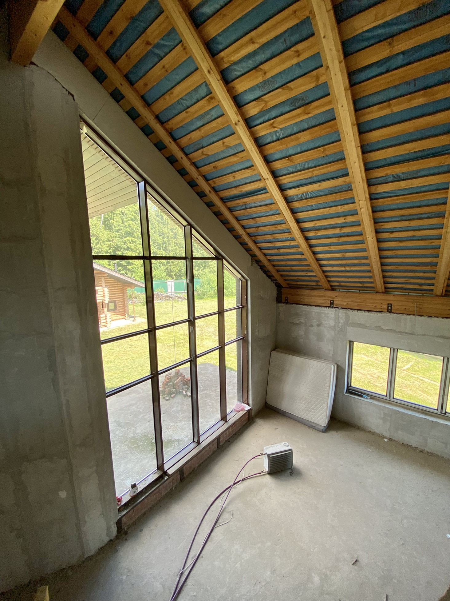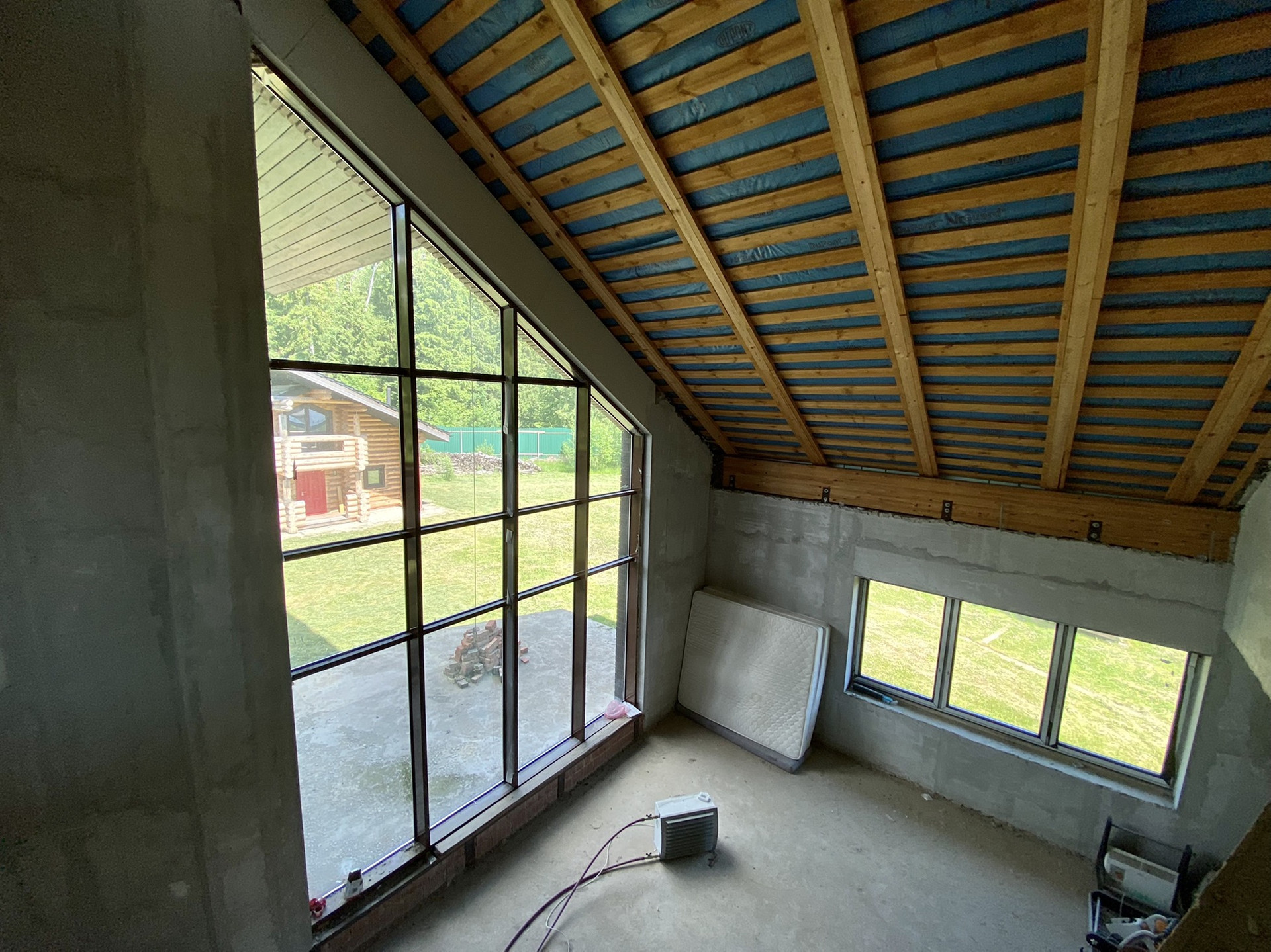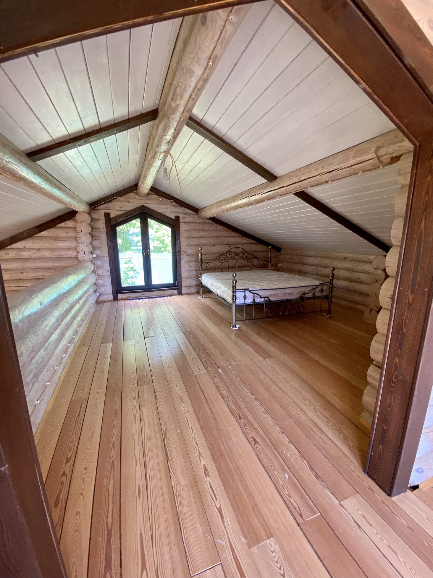 Мансарда- со скатной крышей и с\у, имеет панорамное остекление. Можно разместить спальню/комнату отдыха/мастерскую.