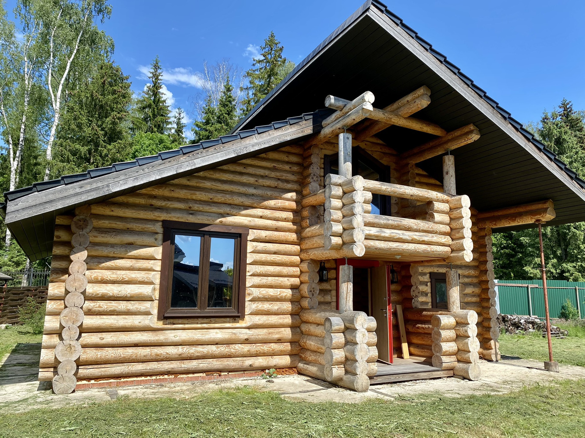 На участке: гараж на 1 м/м с котельной и комнатой для охраны; гараж на 2 м/м и с 2 жилыми комнатами и 1 санузлом; 2х этажная баня из круглого сруба.