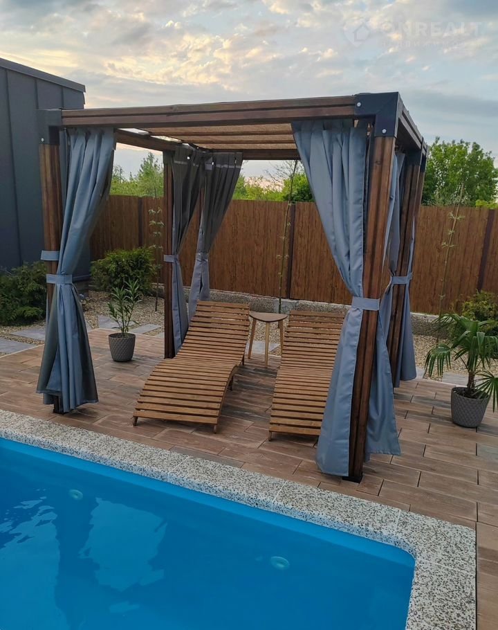 -пергола с шезлонгами, для отдыха в тени