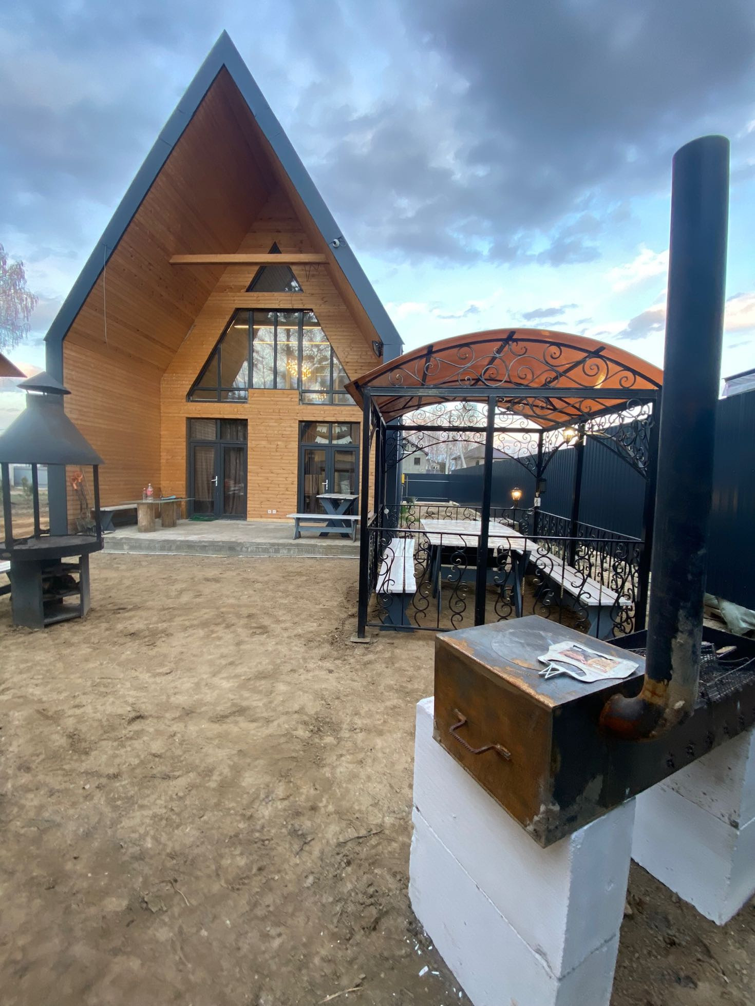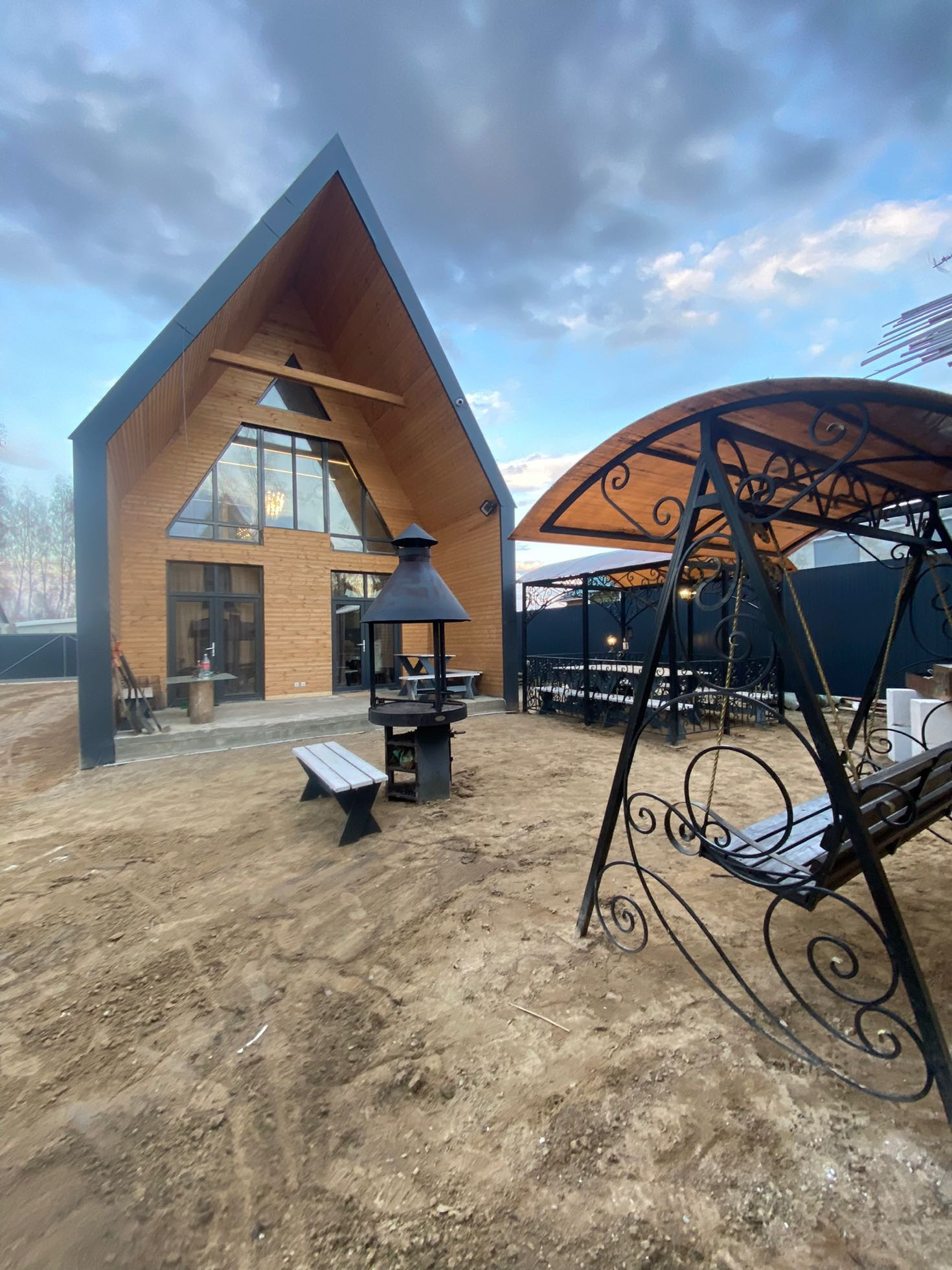 Трехэтажный Дом+второй дом свободного назначения (бассей +хаммам+спортзал, гостевая, спальня) в стиле «БАРН-ХАУС».