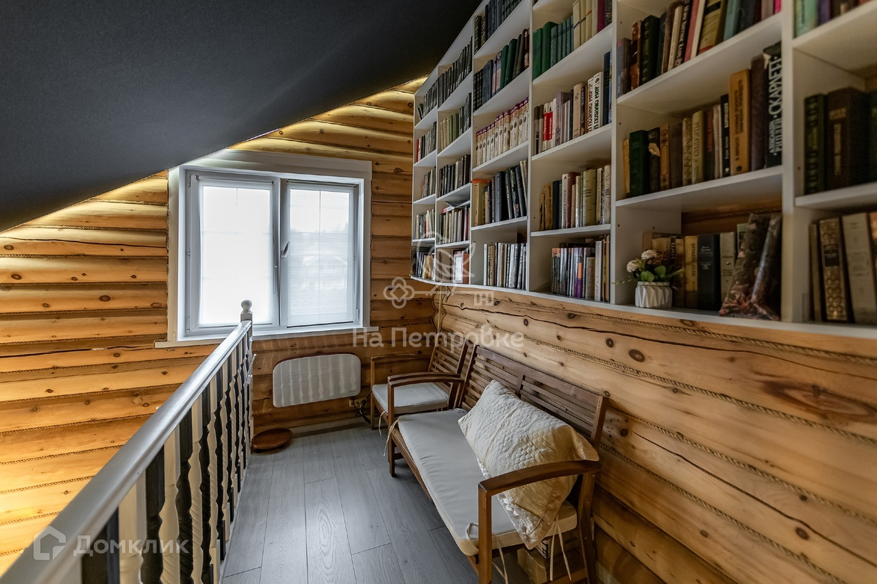 2й этаж: библиотечная зона, 3 спальни, санузел.
