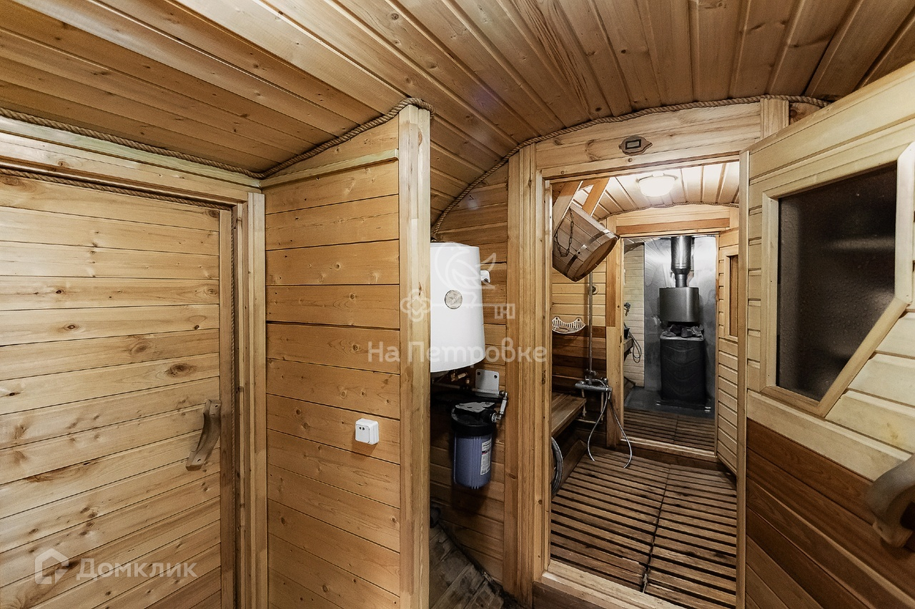 1й этаж (все полы с подогревом): большая кухня-гостиная (70 кв м) с действующим дровяным камином, санузел с постирочной зоной и джакузи, встроенные шкафы, спальная комната 15кв.м. со своей гардеробной комнатой 8кв.м., бойлерная, два выхода на улицу;