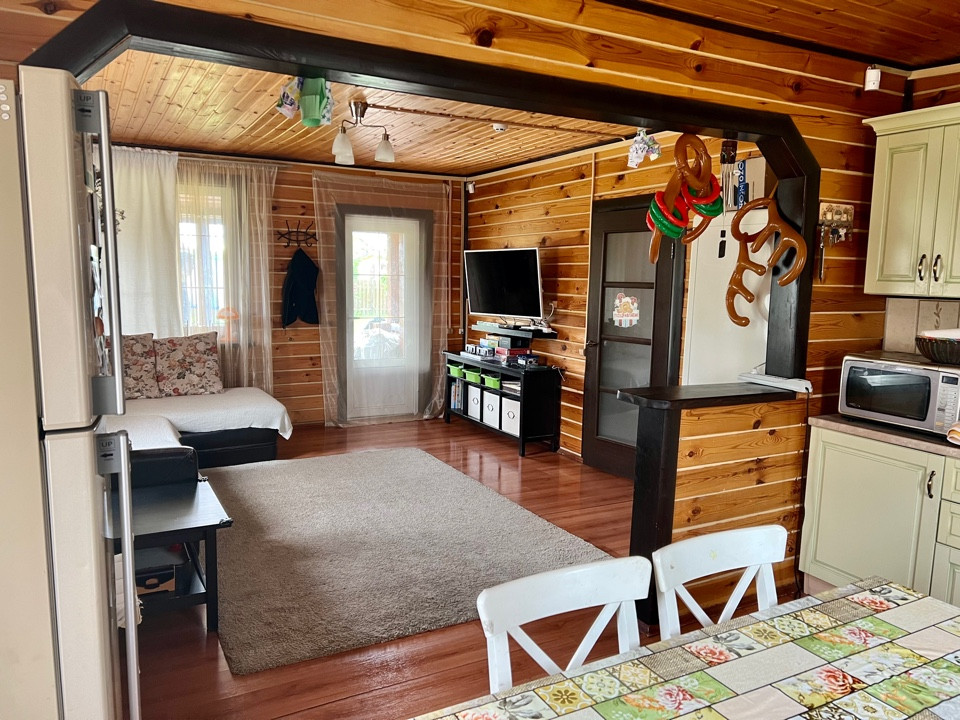 Продается прекрасный двухэтажный деревянный коттедж 141,7 кв. м. на участке 12,9 соток для круглогодичного проживания в охраняемом КП Романовские дачи -1. Дом из профилированного бруса 190х135 мм, фундамент ленточный монолитный, кровля из металлочерепицы. На 1-м этаже большая гостиная, совмещенная с кухней и с выходом на небольшую веранду, спальня, санузел с душевой кабиной, холл, тамбур и котельная, на 2-м этаже 3 спальни, санузел с ванной, холл (обустроен под детскую игровую). Дом продается с мебелью.