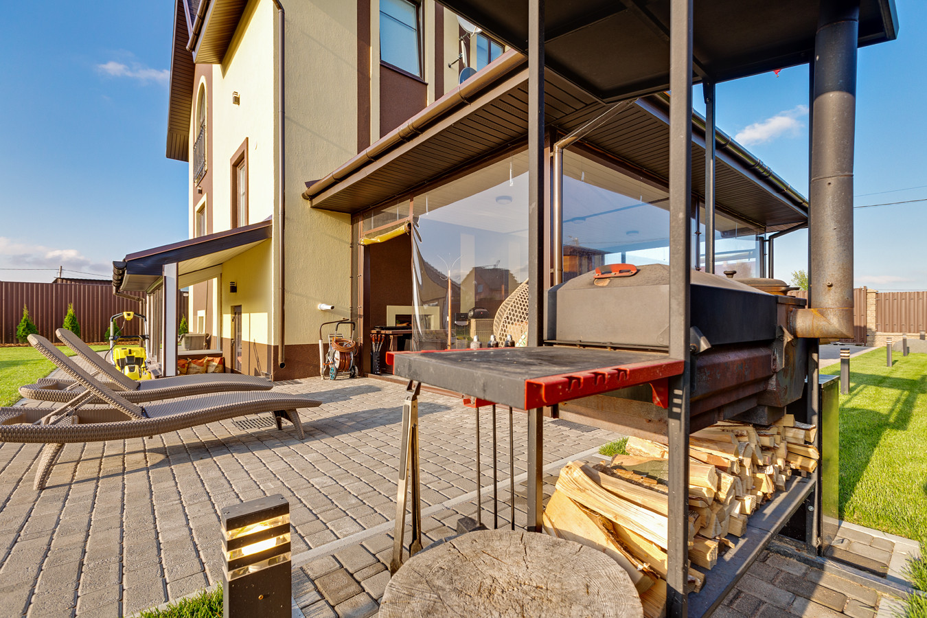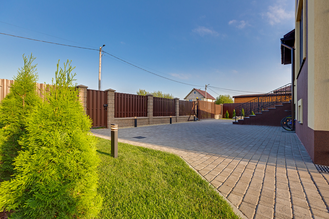 Вся территория участка с подсветкой.