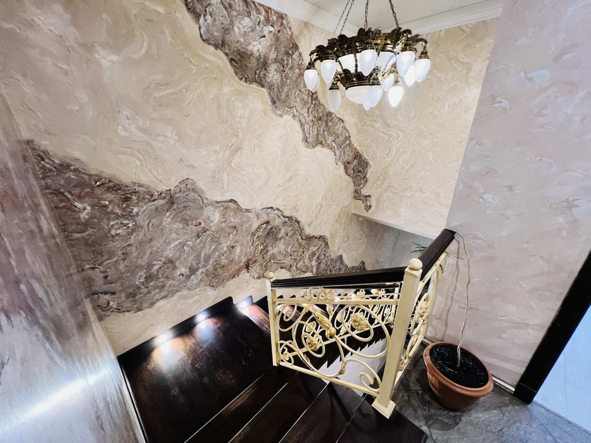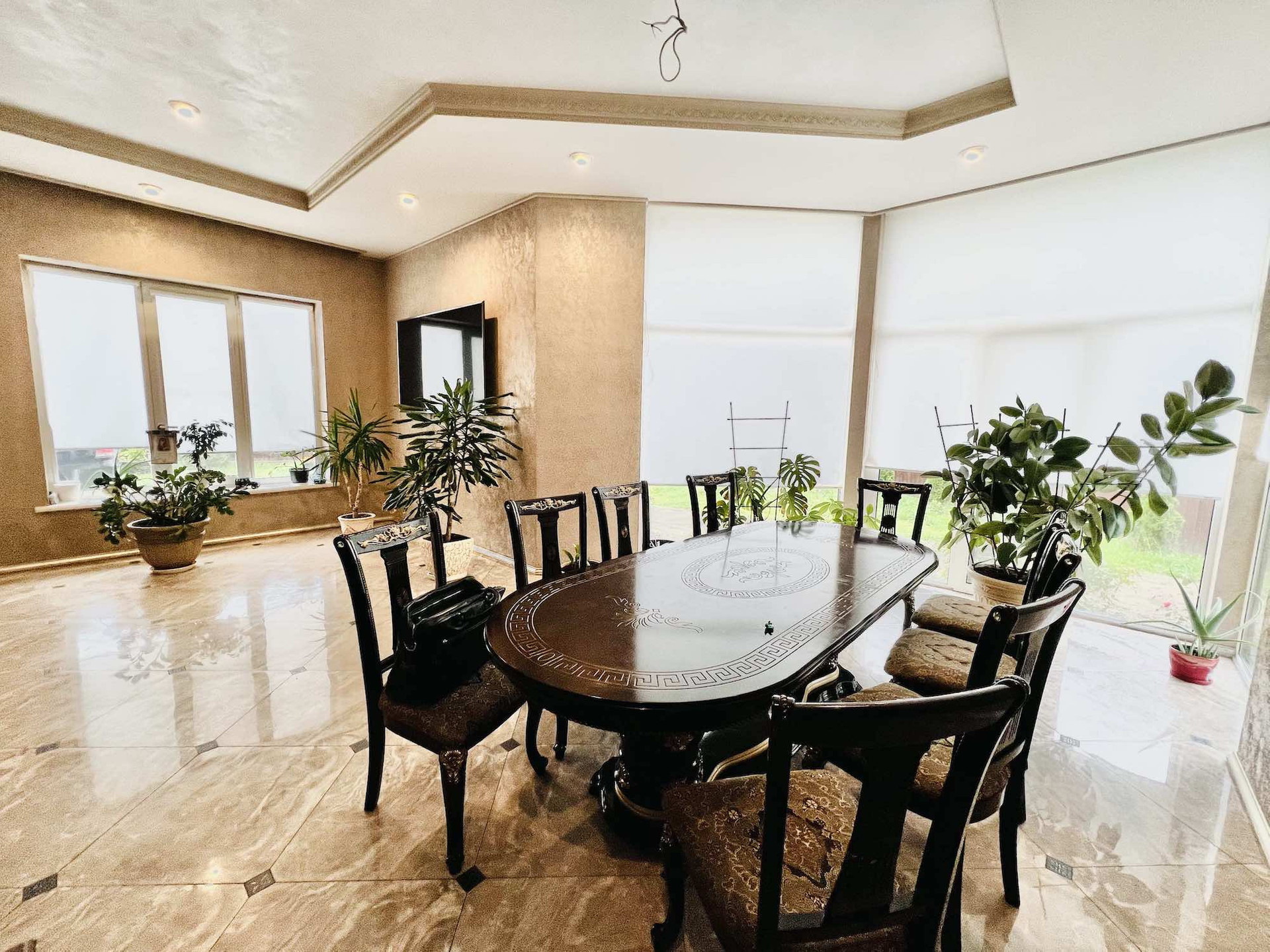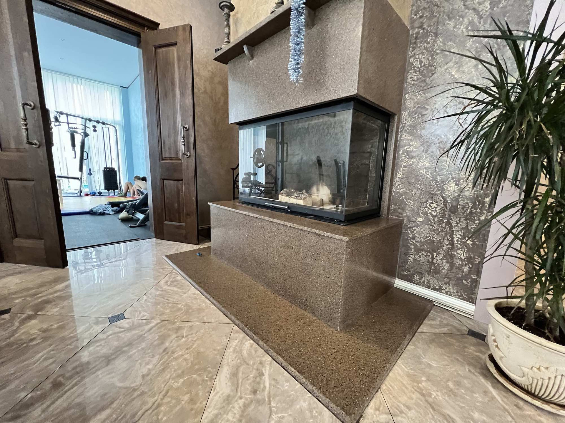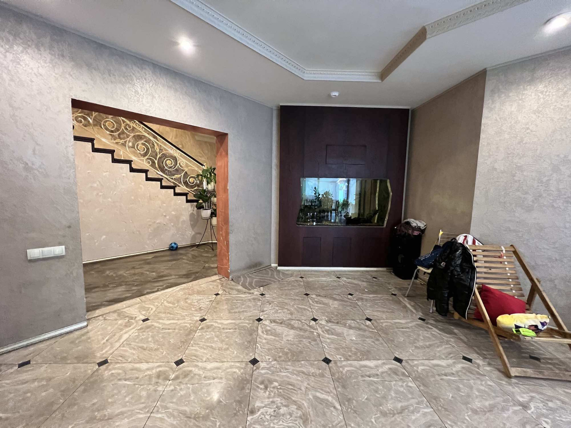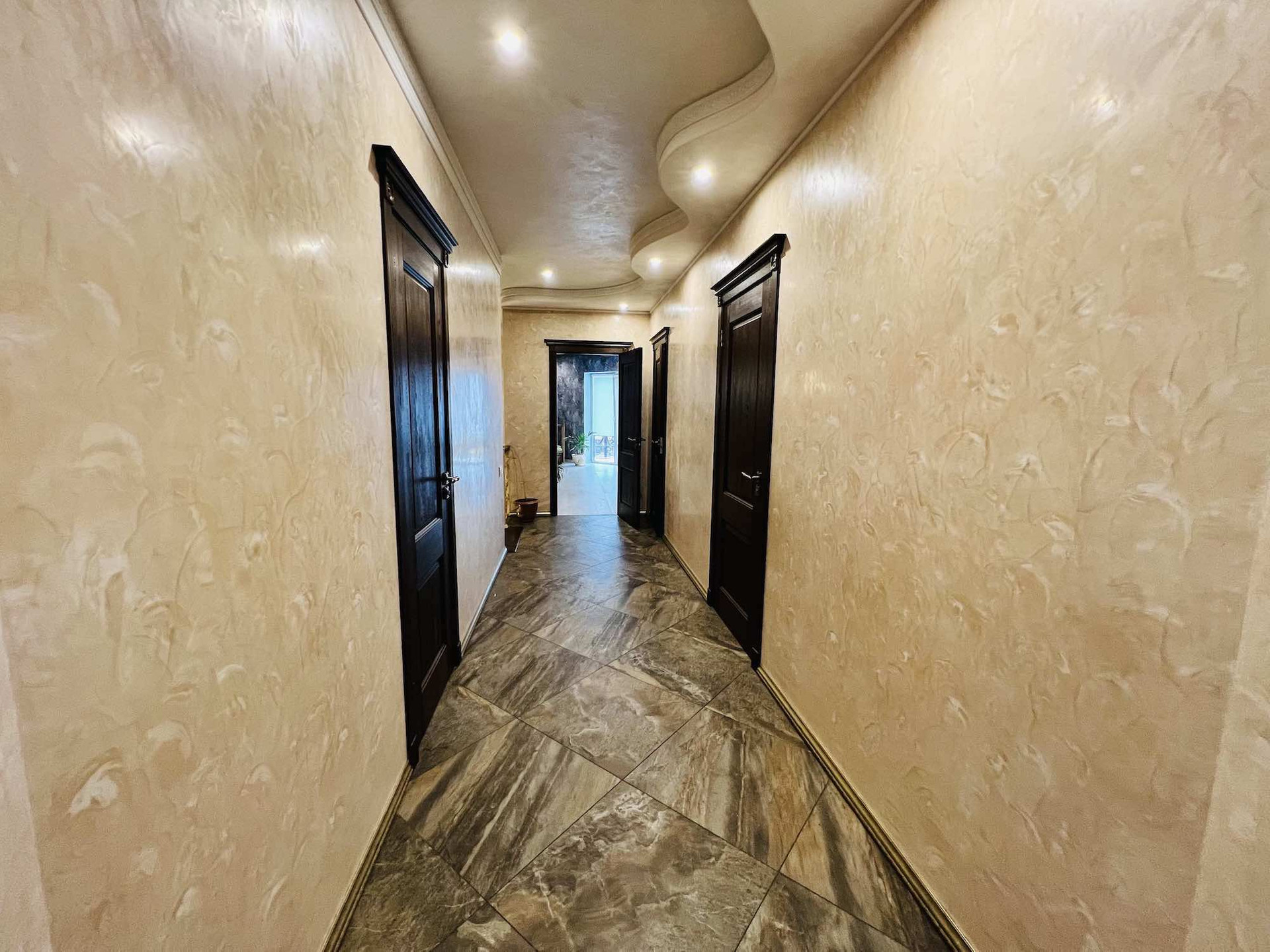 Внутренняя отделка: венецианская дизайнерская штукатурка на стенах и потолке, обои от кутюр Роберто Кавалли, керамогранитная плитка.