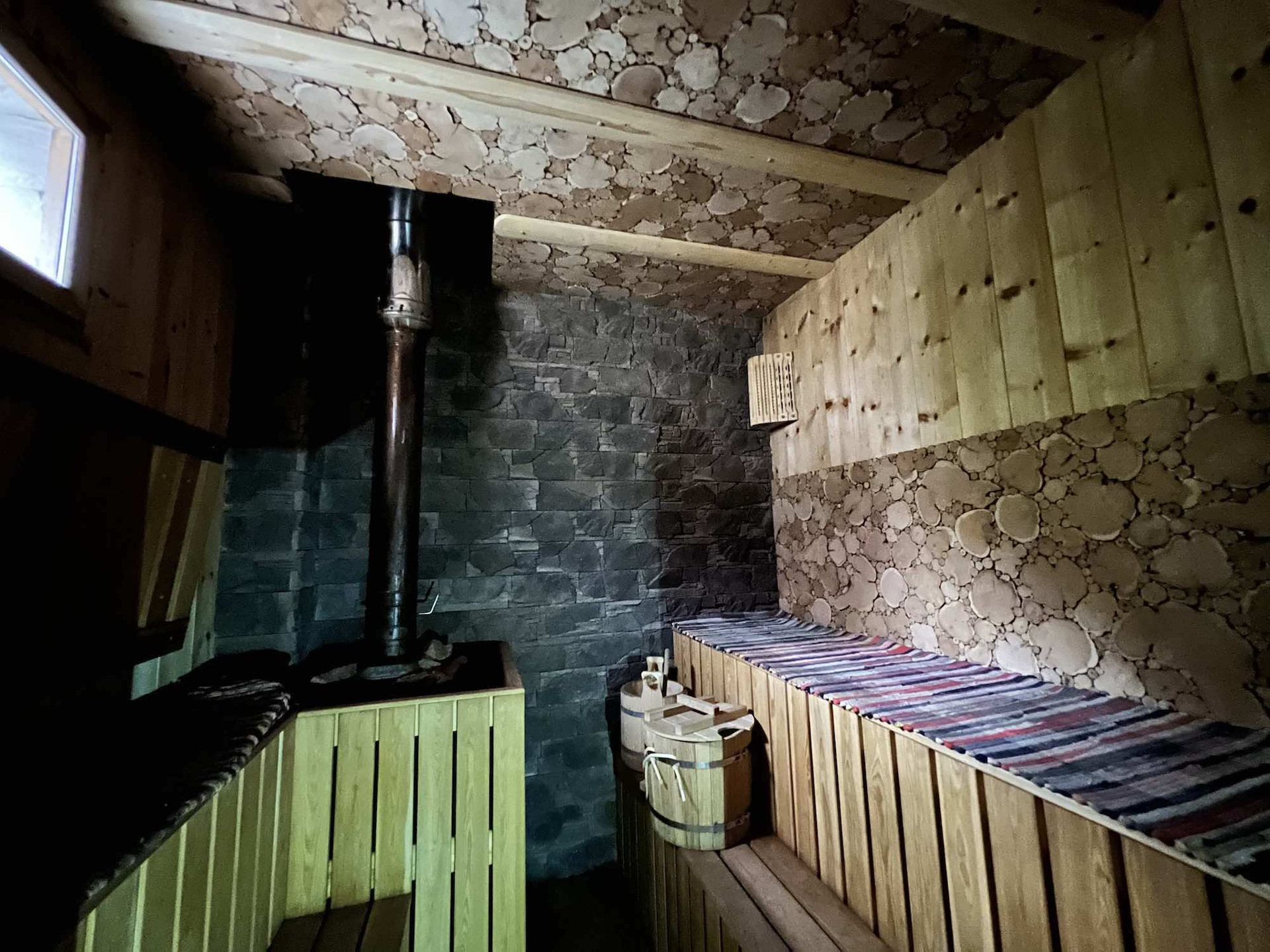 Парилка функционирует, облицовка выполнена из заповедного Крымского можжевельника.