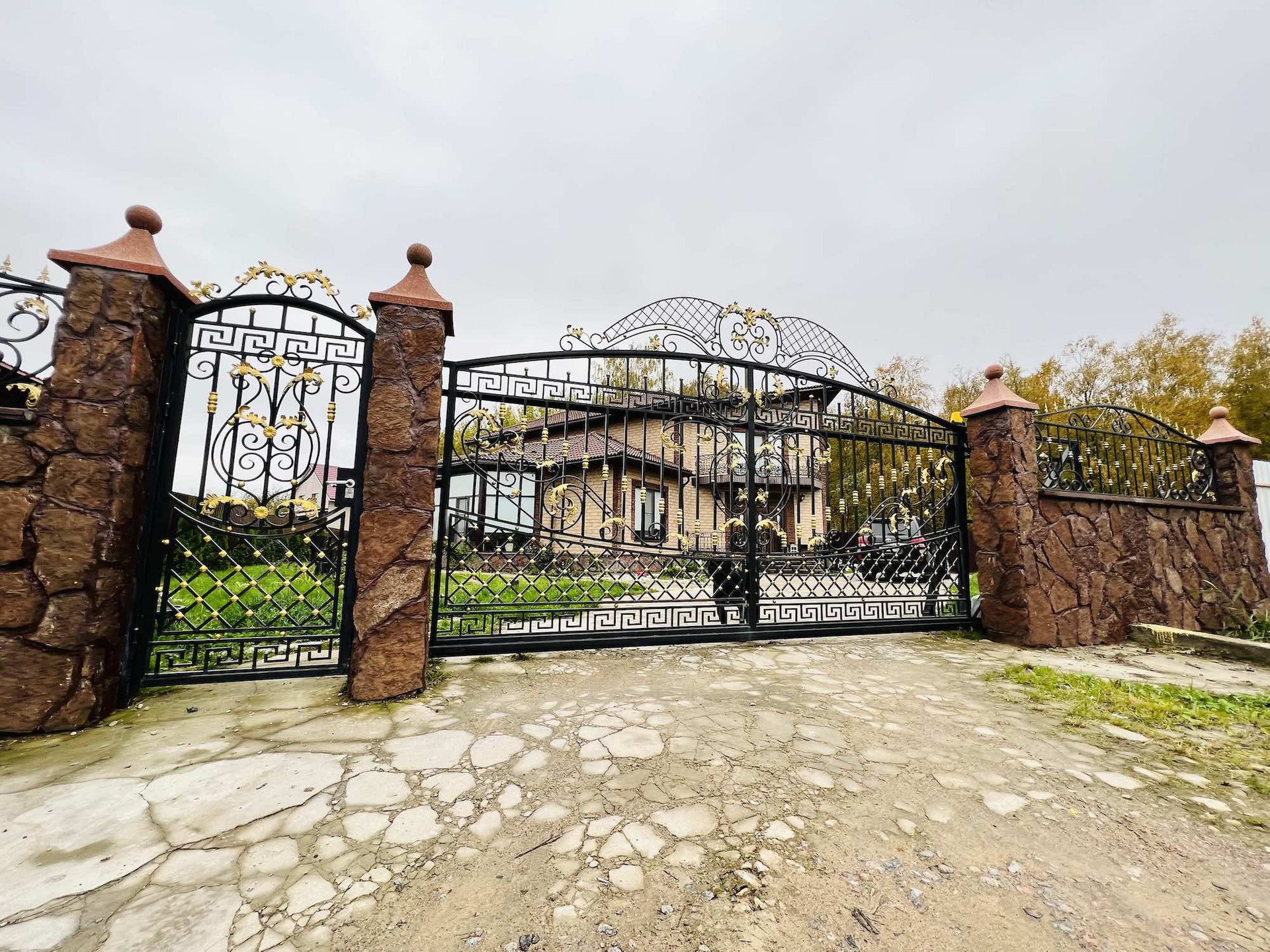 Участок огорожен. Электрические кованные раздвижные ворота.