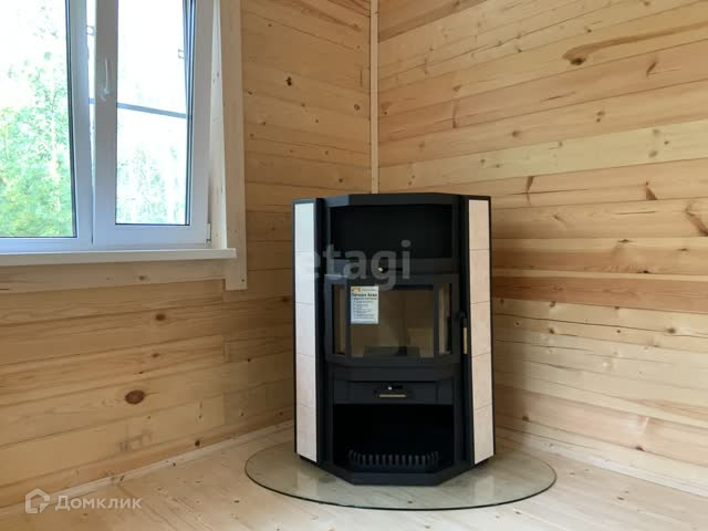 В доме установлена печь-камин с теплообменником для подключения водяного контура мощностью 13 кВт, электричество 15 кВт, водоснабжение из скважины, оборудованной пластиковым кессоном, канализация – автономная станция биоочистки, газ по границе участка.