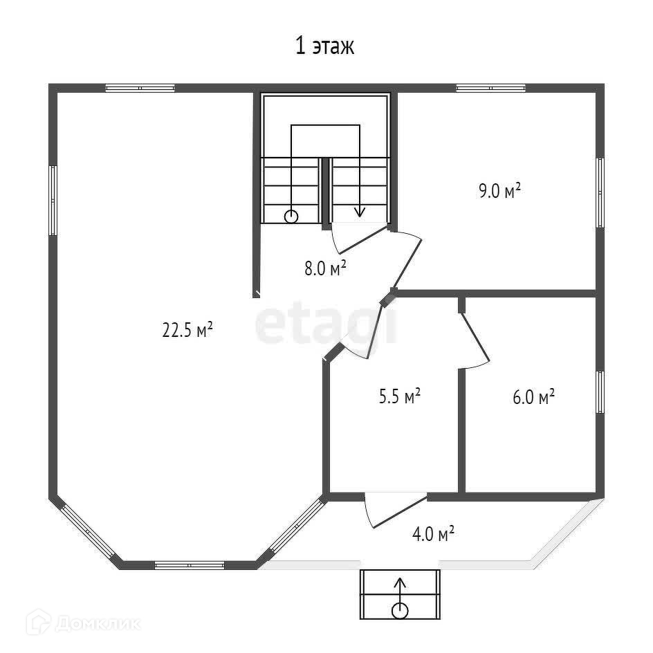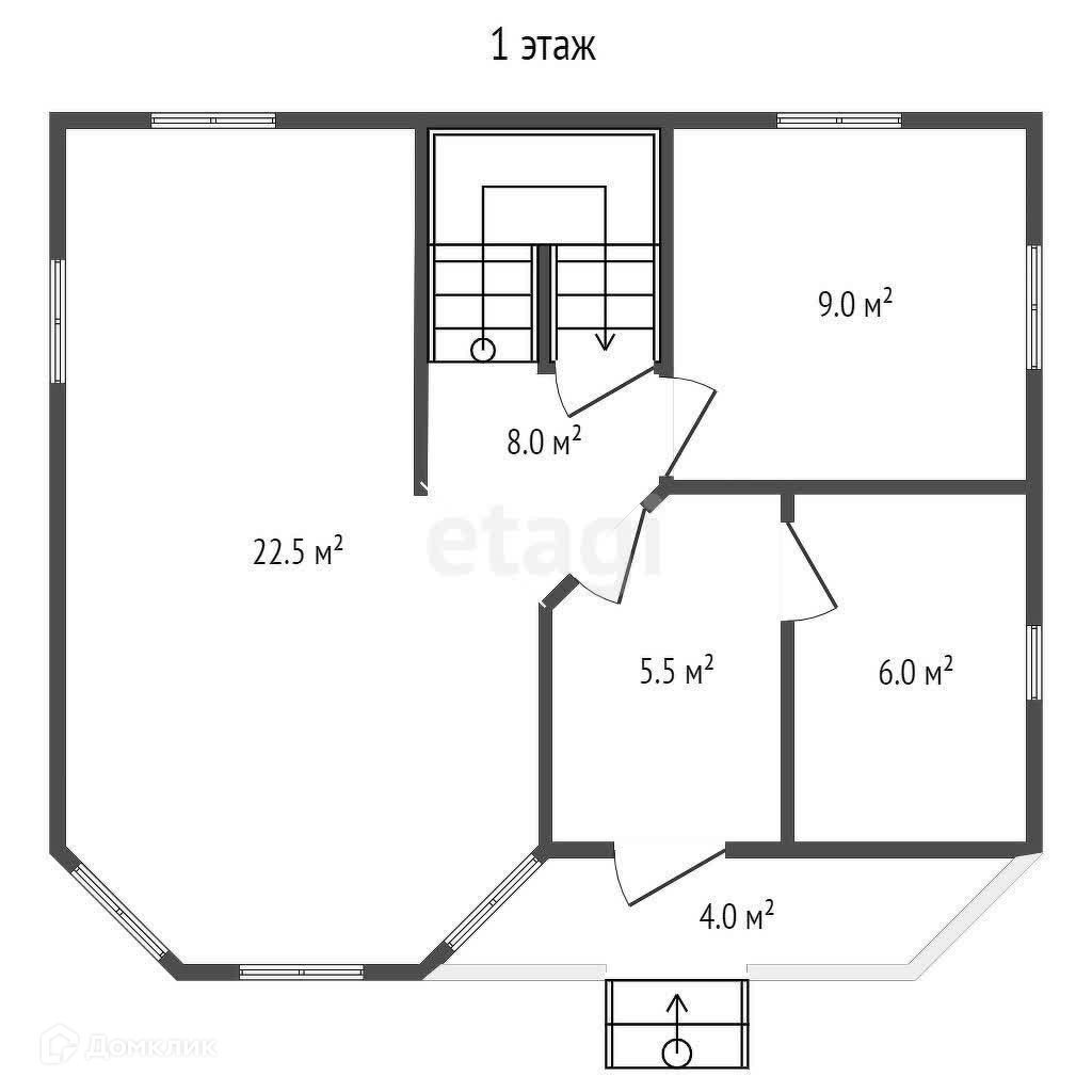 1 этаж: прихожая, кухня, гостиная-столовая, кладовая, санузел, терраса.