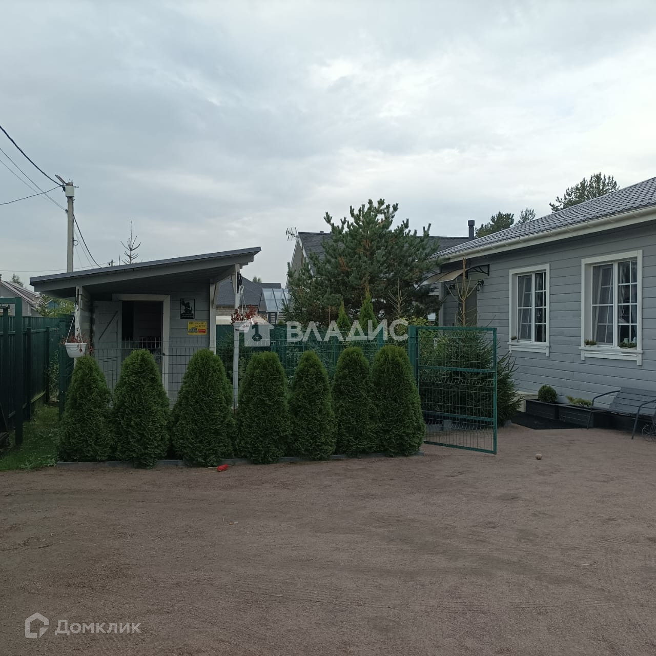 На участке есть большая теплица и вольер для  собаки.