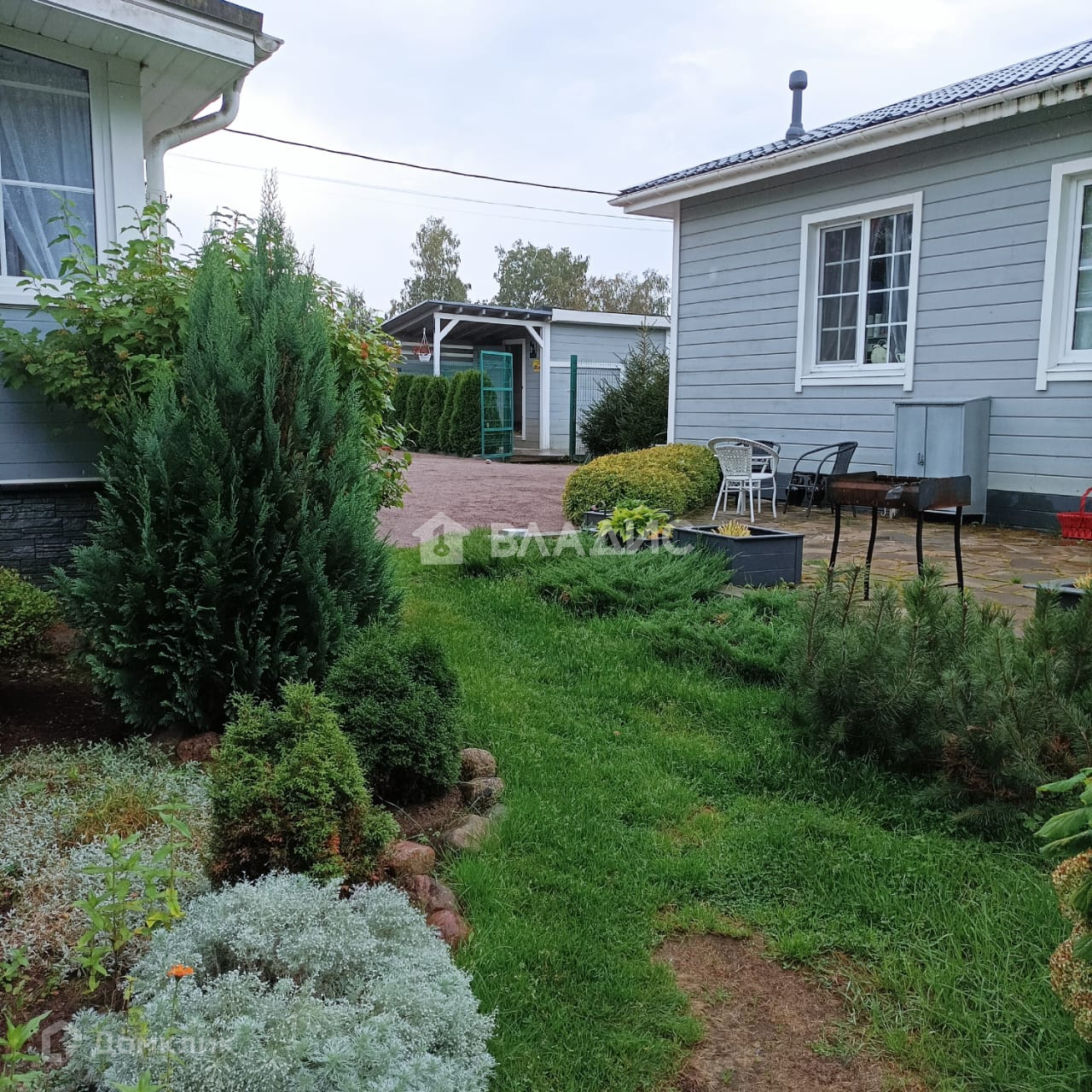 На участке проведены ландшафтные работы, много хвойных и плодовых деревьев. Сухой и ухоженный.Есть терраса для барбекю.