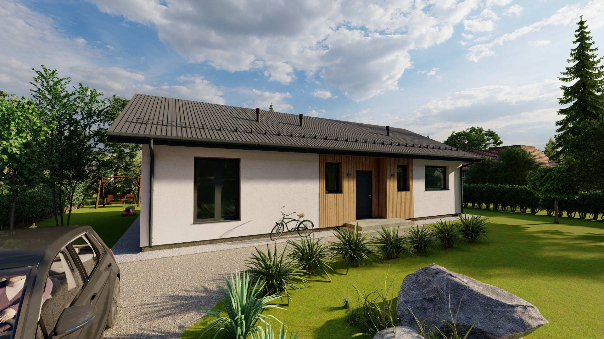 Внешняя отделка:декоративная штукатурка, покраска Cerezit, планкен лиственница.