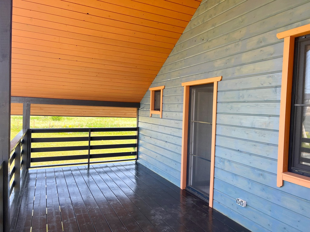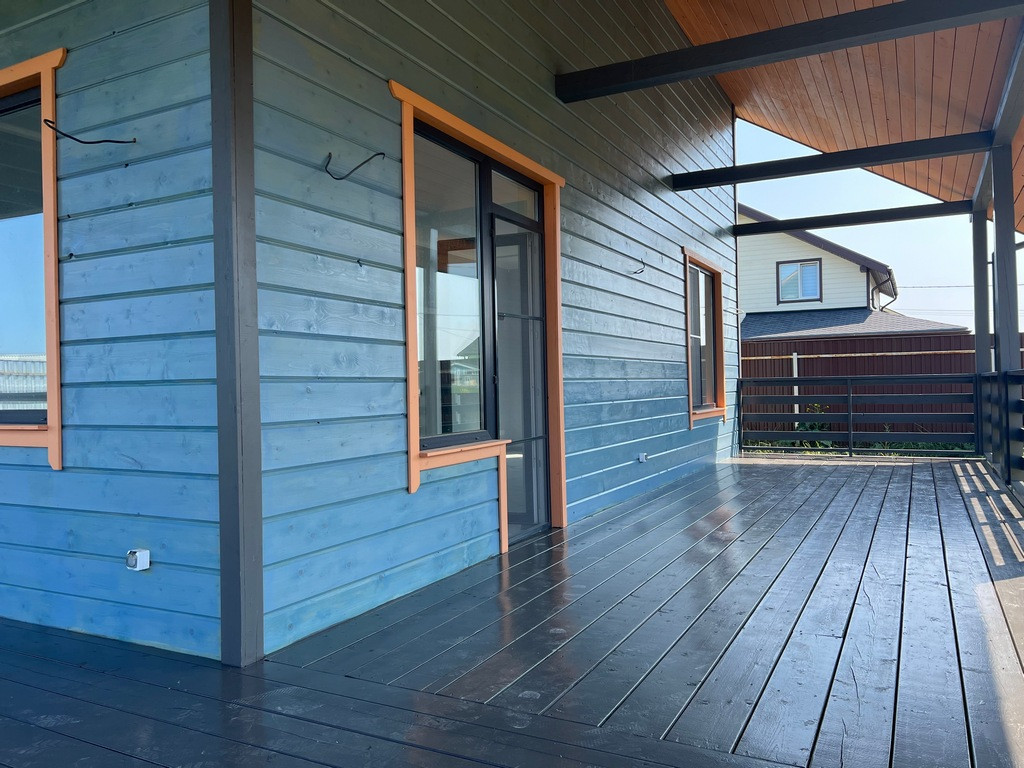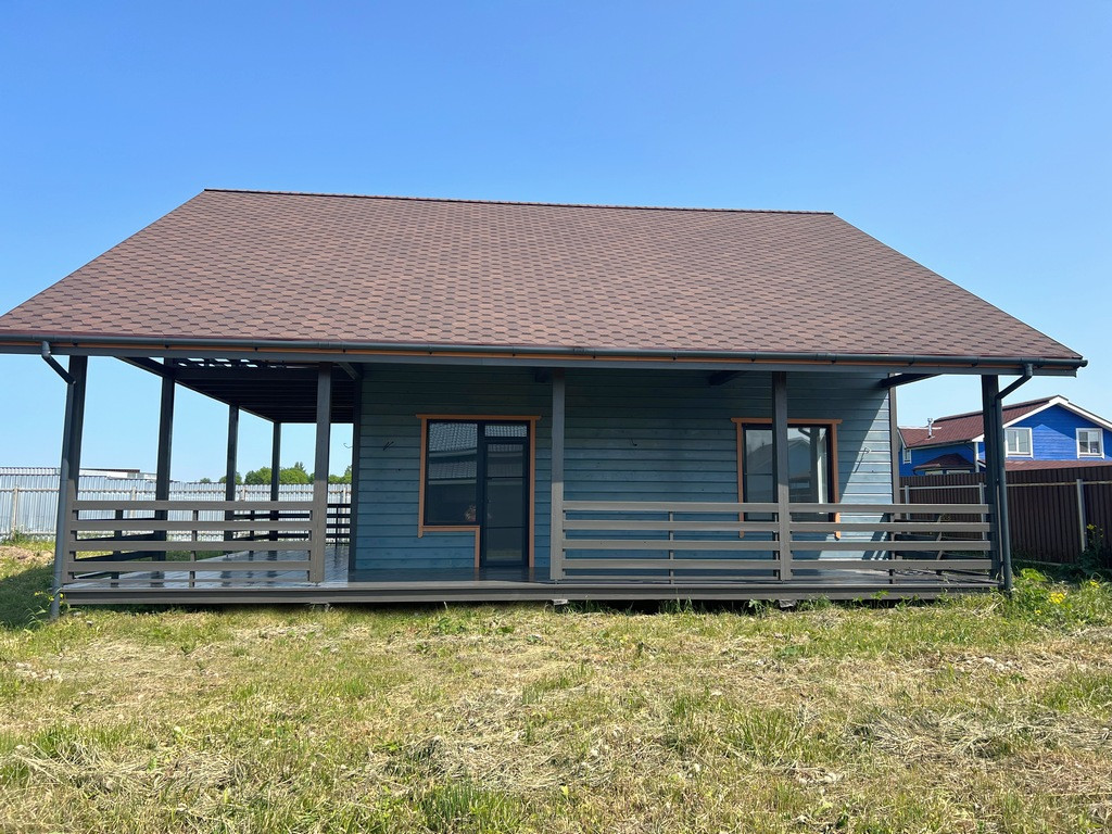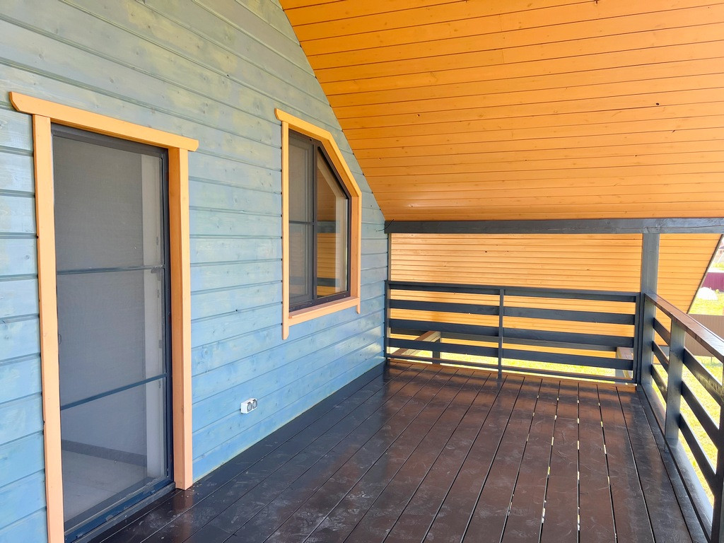 Участок правильной формы, ровный, сделан широкий въезд для автомобиля. Дом 2-х этажный 196 кв. м. с большой террасой, построен по каркасной технологии.
