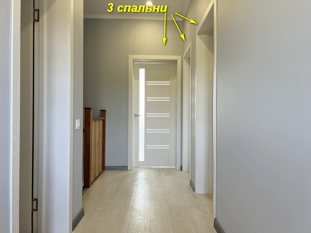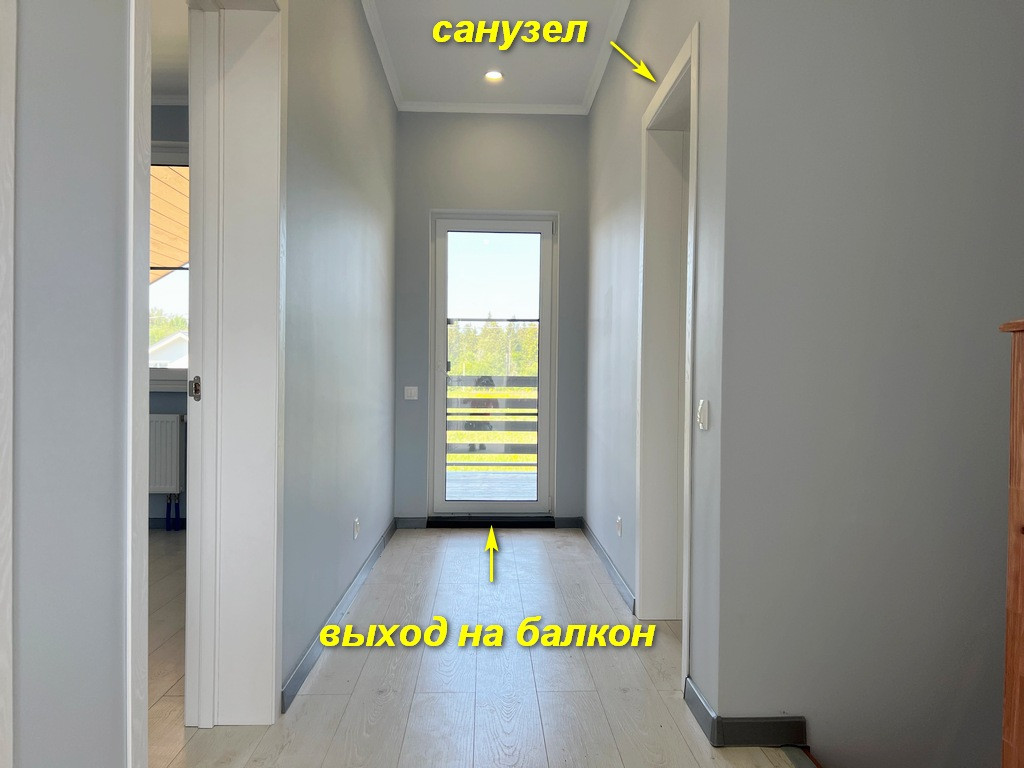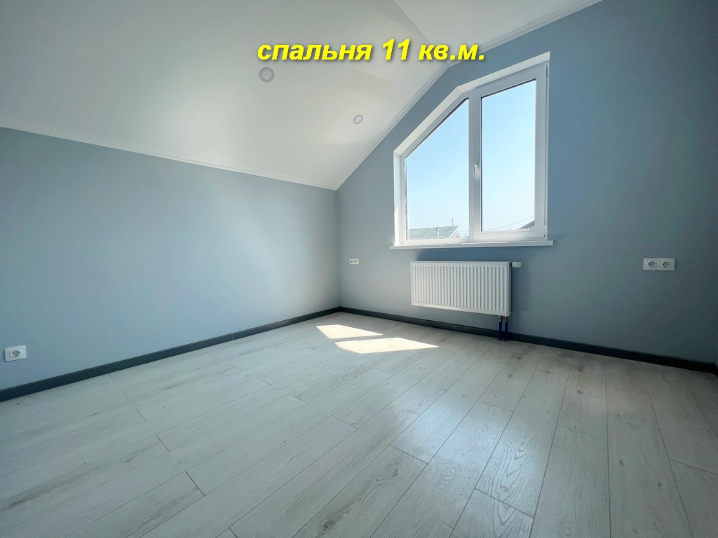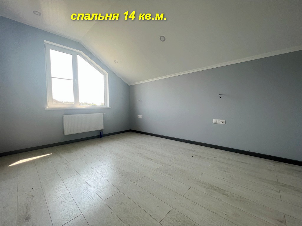 Второй этаж: три комнаты 14+12+ 11 кв.м., санузел 5,3 кв.м., просторный балкон. По всему дому сделана разводка электричества 15 кВт, воды (питьевая из скважины). Отопление: 1 этаж: теплые полы, 2 этаж: радиаторы от электрокотла.