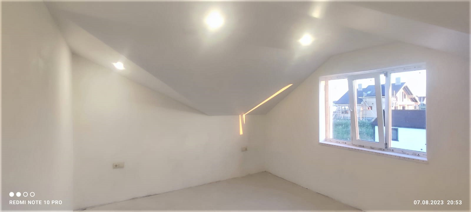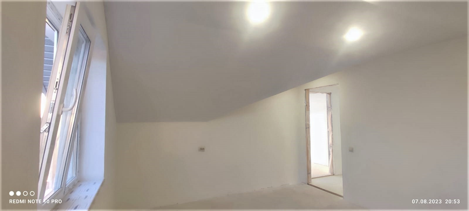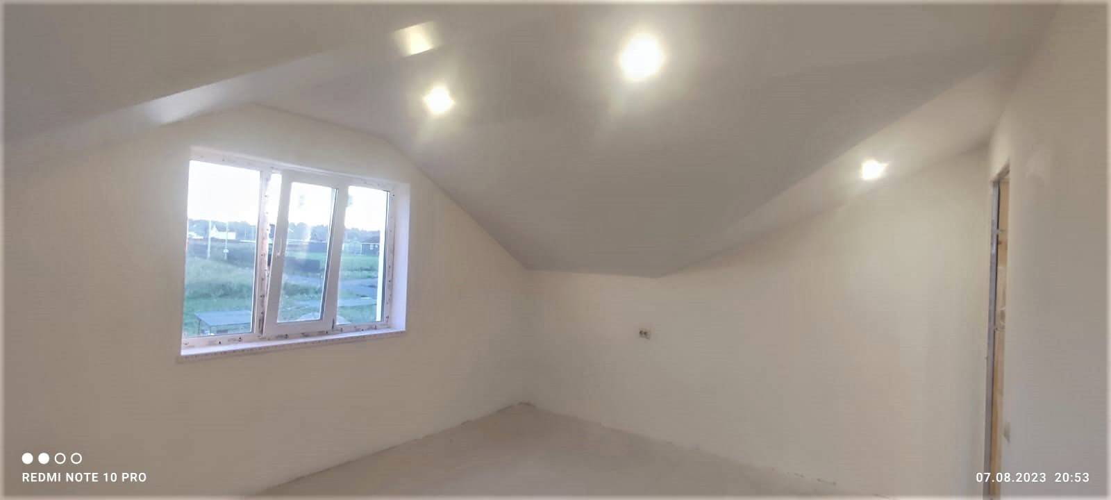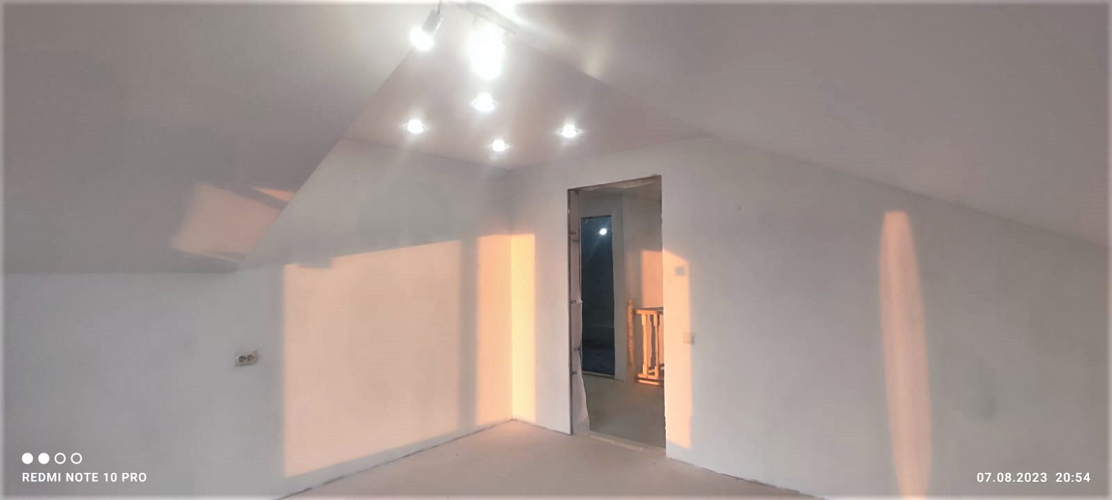 Внутренняя отделка дома завершена на 70%. По всему дому сделана разводка электричества (15 КВт), установлены розетки, выключатели, потолочное освещение. Сделаны выводы под духовой шкаф, полотенцесушитель. Сделана подводка под раковину в кухне; унитаз и раковину в гостевом санузле на первом этаже; унитаз (инсталляция), ванную, раковину и стиральную машину в совмещённом санузле на втором этаже. Установлены натяжные потолки. Стены зашиты гипроком, загрунтованы и выровнены шпаклёвкой. В санузлах стены и пол облицованы керамогранитом. Установлена лестница П-образной формы с площадкой между первым и вторым этажом.
