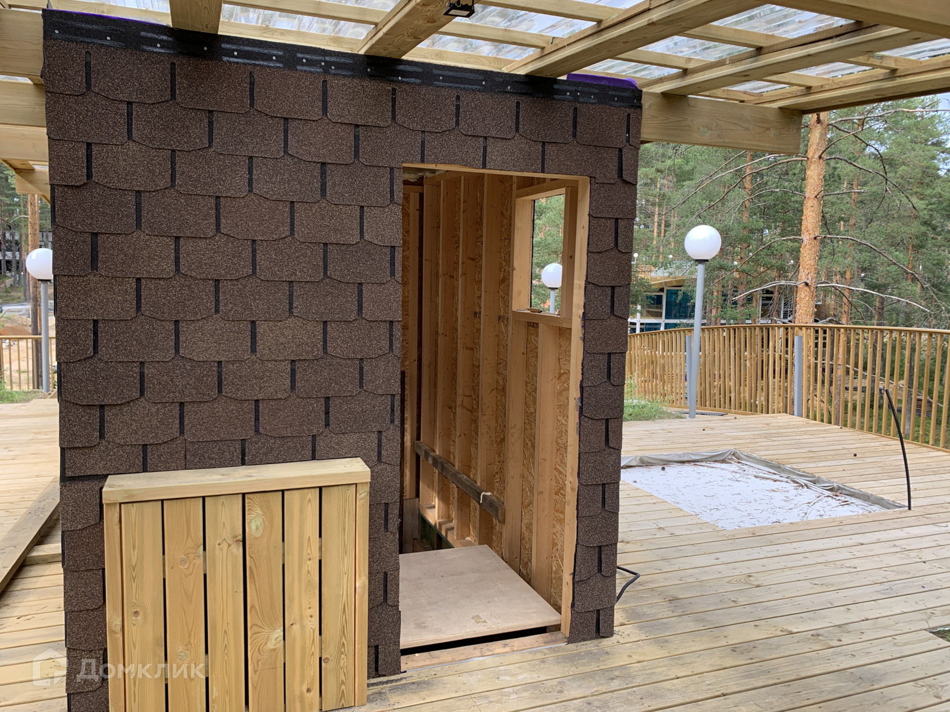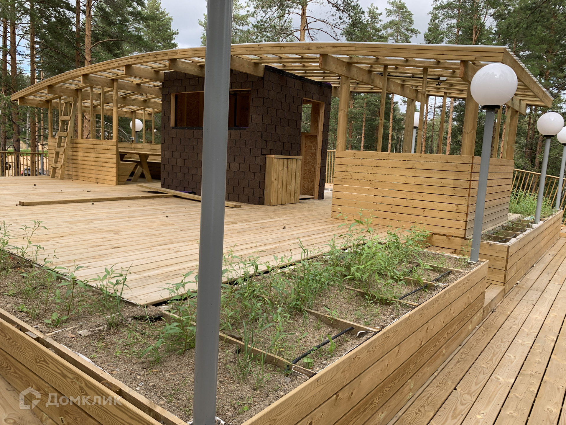 Все конструкции кровли выполнены из террасной импрегнированной доски, не подверженной гниению. Система авто-полива и сбора дождевой воды упрощает уход за садом.