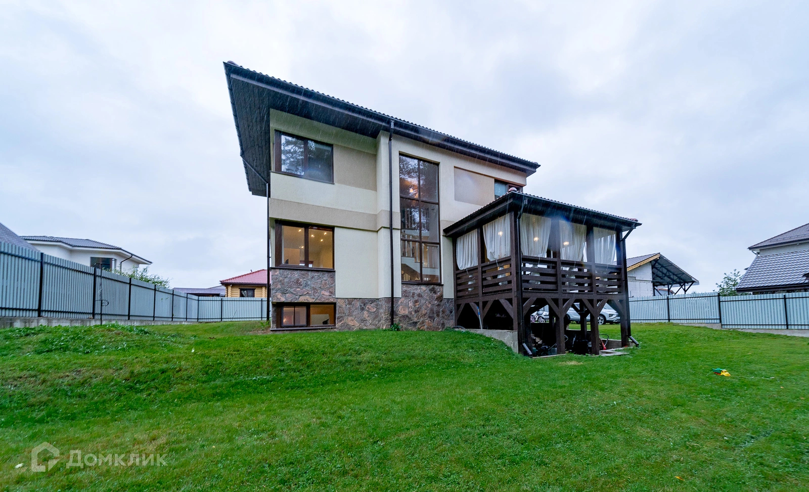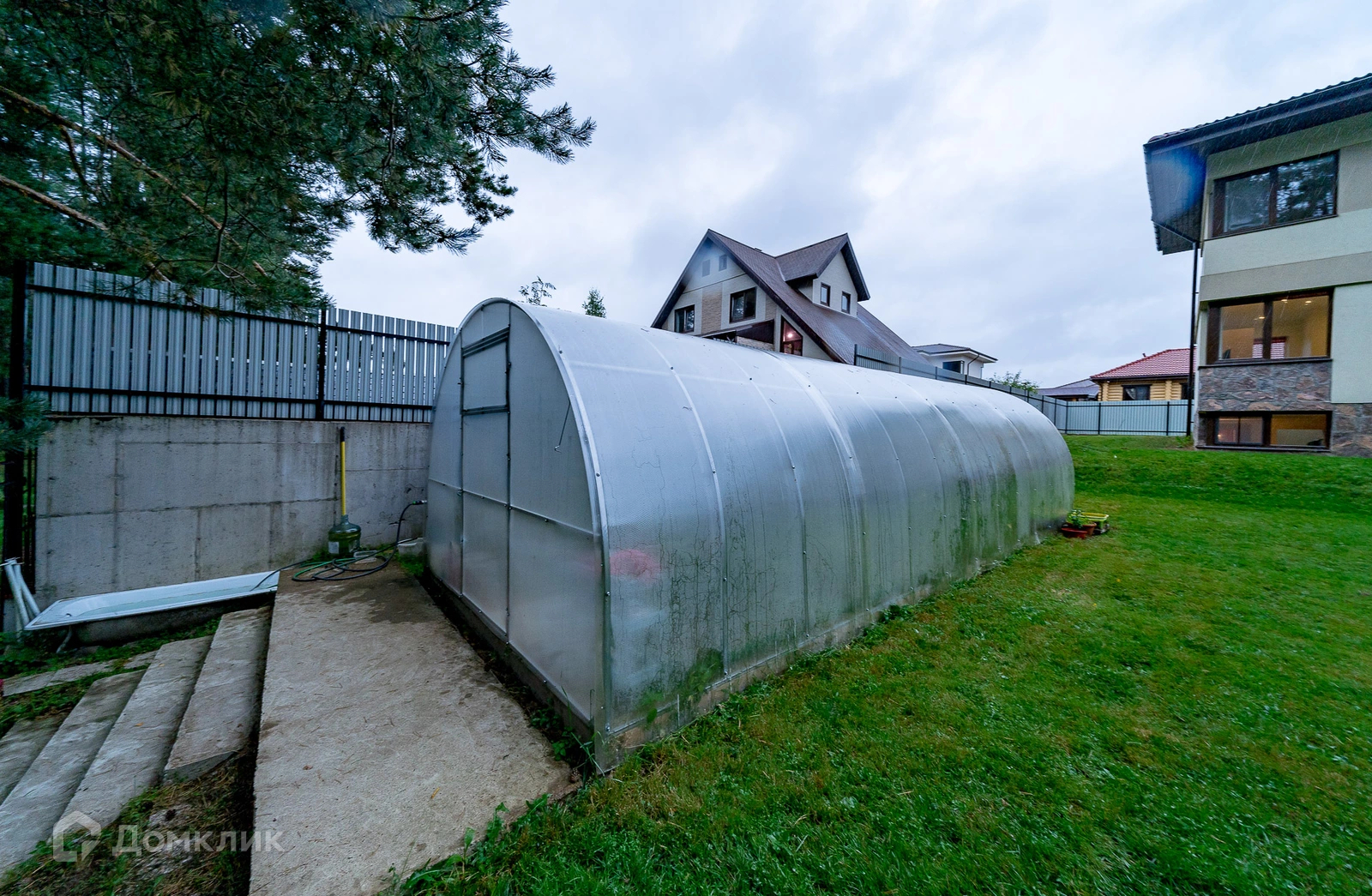 По участку проведен дренаж, по дому водосточка и снегозадержатели. На участке расположен стационарный мангал с печкой, теплица 3*8, бак для полива 1000 литров с системой полива, две оцинкованные грядки. Участок огорожен забором: евроштакетник на бетонной опалубке, распашные ворота.