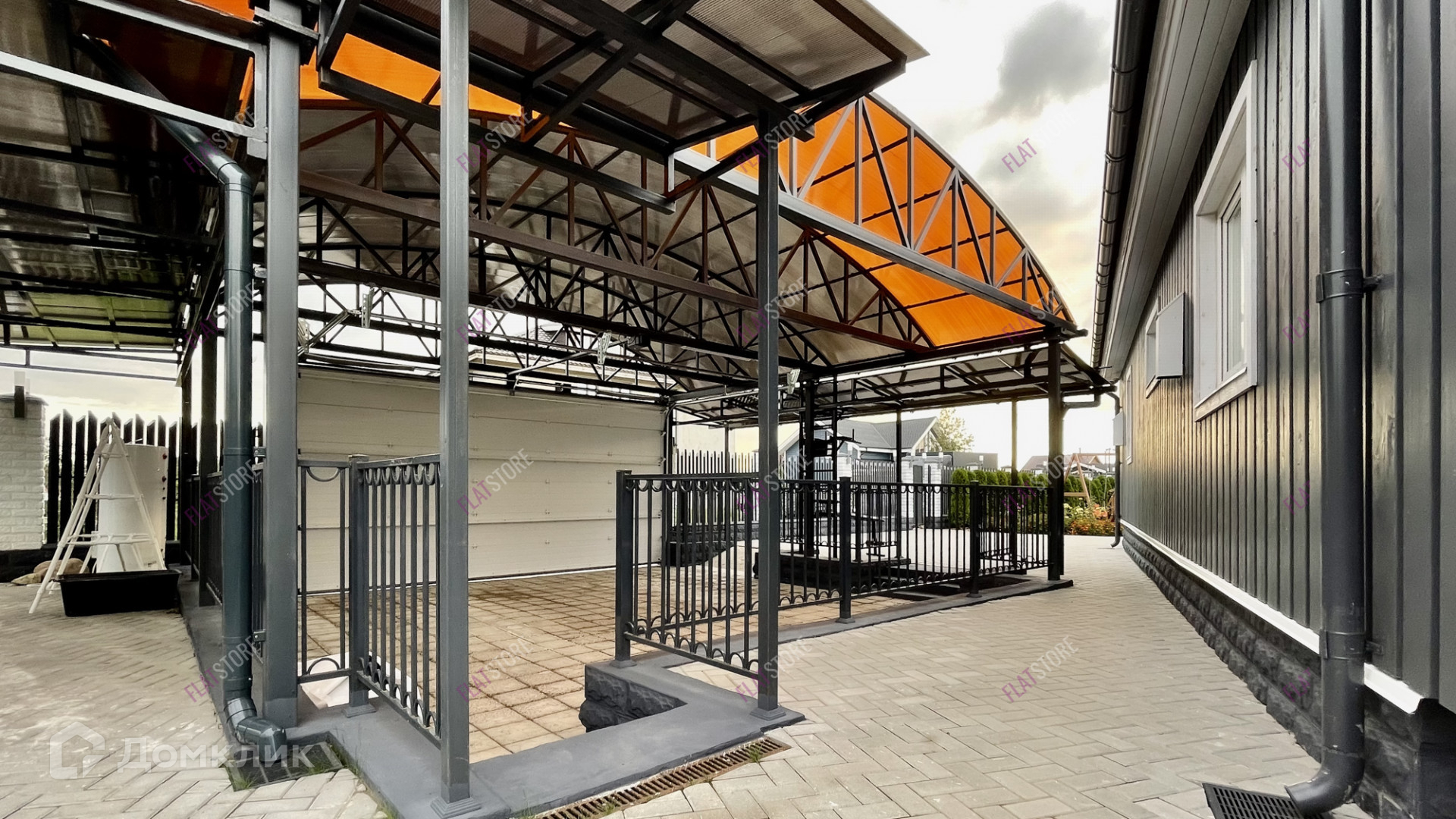 На заднем дворе, скрытом из вида, находится хоз.блок для хранения инвентаря и теплица для выращивания свежих овощей и зелени. Построен навес с автоматическими воротами для 2х автомобилей для защиты от осадков.