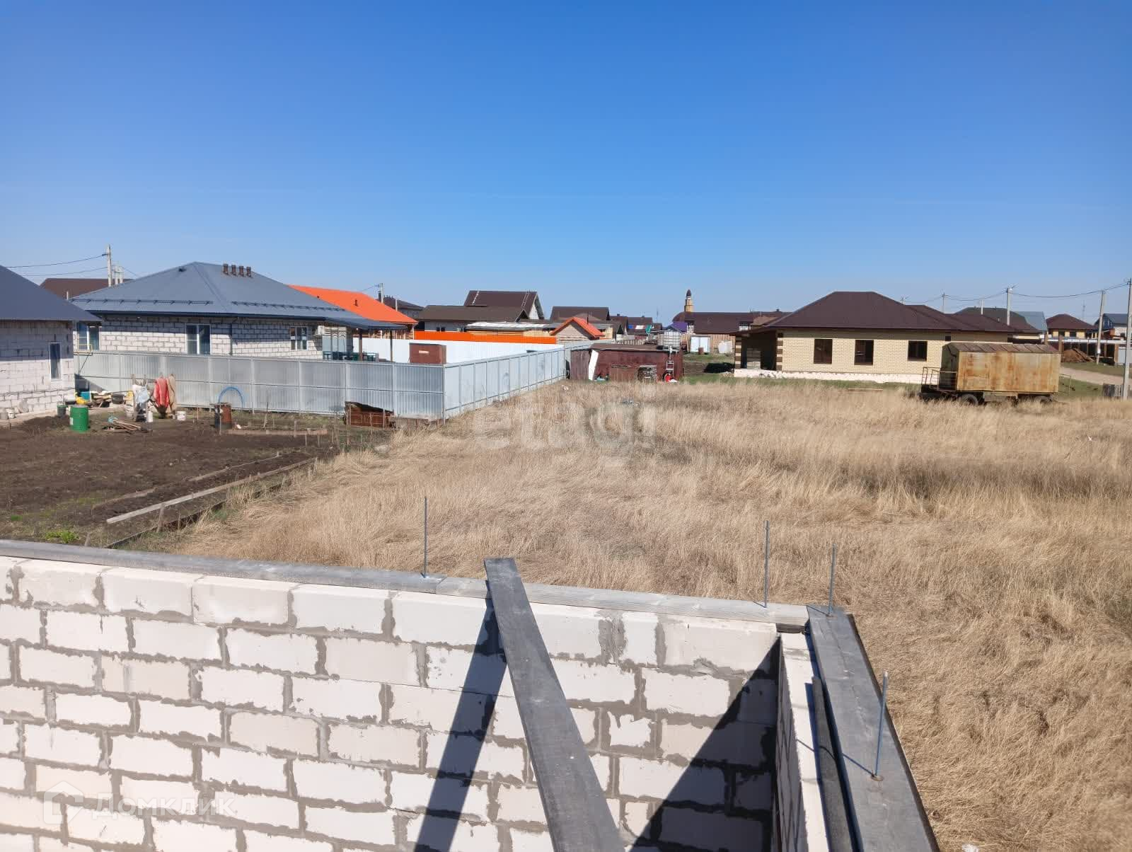 Продается угловой земельный участок 8 соток в д. старые Ерыклы ДНТ «Солнечное». Участок расположен в прекрасном месте. Очень хорошие соседи. На участке имеется недостроенное строение 6*9 метров без крыши. Установлены пластиковые окна. По плану строение для бани. Очень хороший фундамент. Газ, дорога, электричество. Вода –скважина глубиной 45 м. Планируется проведение центрального водоснабжения. Также завезена щебенка 4 камаза, доски 50*200 мм 50 штук, кирпич красный, КАМАЗ песка. Трубы для забора 60*60*2 мм длиной 3 метра в количестве 40 штук -по договоренности.