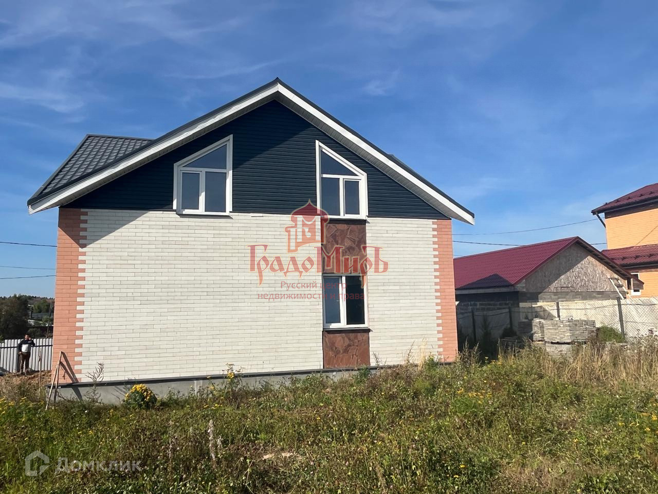 Дом из газосиликатного блока D-400, общей площадью 190 кв.м (​ 9,80 м х 9,80 м), построен в 2021 году, стены 1-го этажа из газосиликатного блока D-400, стены второго этажа из дерева. Фасад 1-го этажа обложен клинкерной плиткой и натуральным камнем, фасад 2-гo этажа cайдингoм пpeмиум класса «GRАND LINЕ». Дом полностью подготовлен к чистовой отделке. Перекрытие между 1 и 2 этажом – деревянные, утепленные минватой. Крыша четырёхскатная, покрыта металлочерепицей. Фундамент забивного типа. Дом предназначен для круглогодичного проживания.  Дому присвоен адрес, возможна прописка!!!
