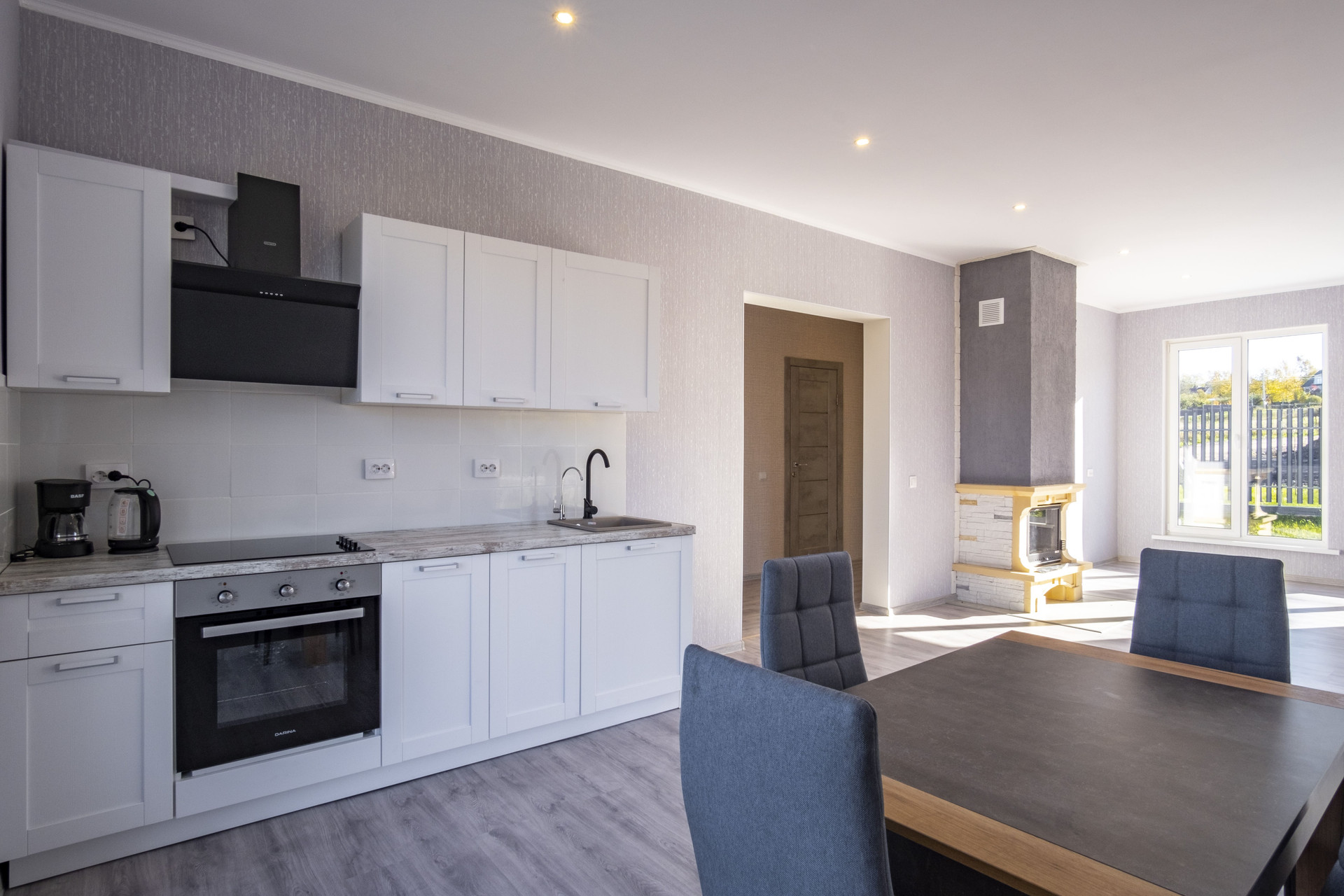 • полностью оборудованная кухня с встроенной варочной панелью и встроенным духовым шкафом