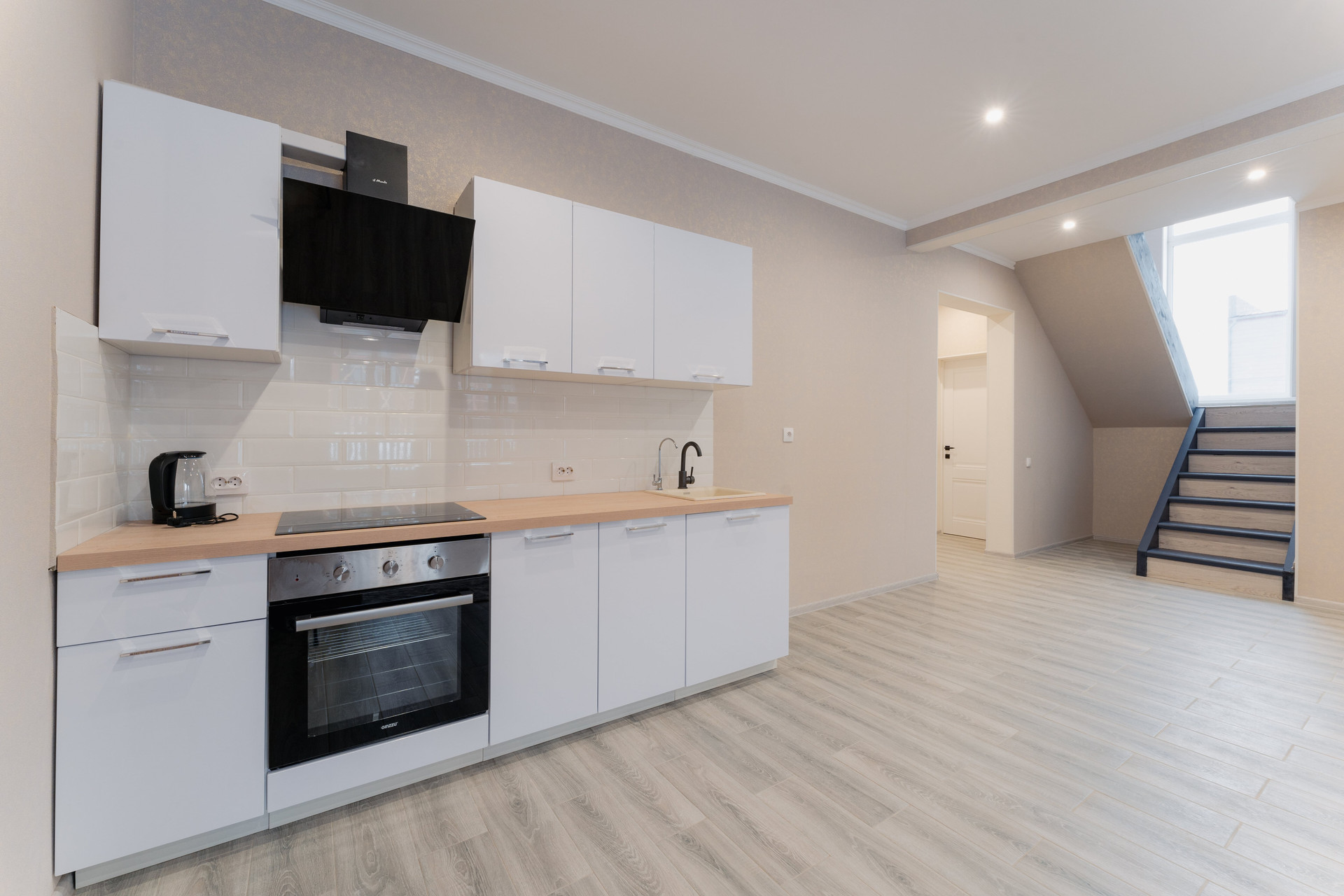 • полностью оборудованная кухня с встроенной варочной панелью и встроенным духовым шкафом