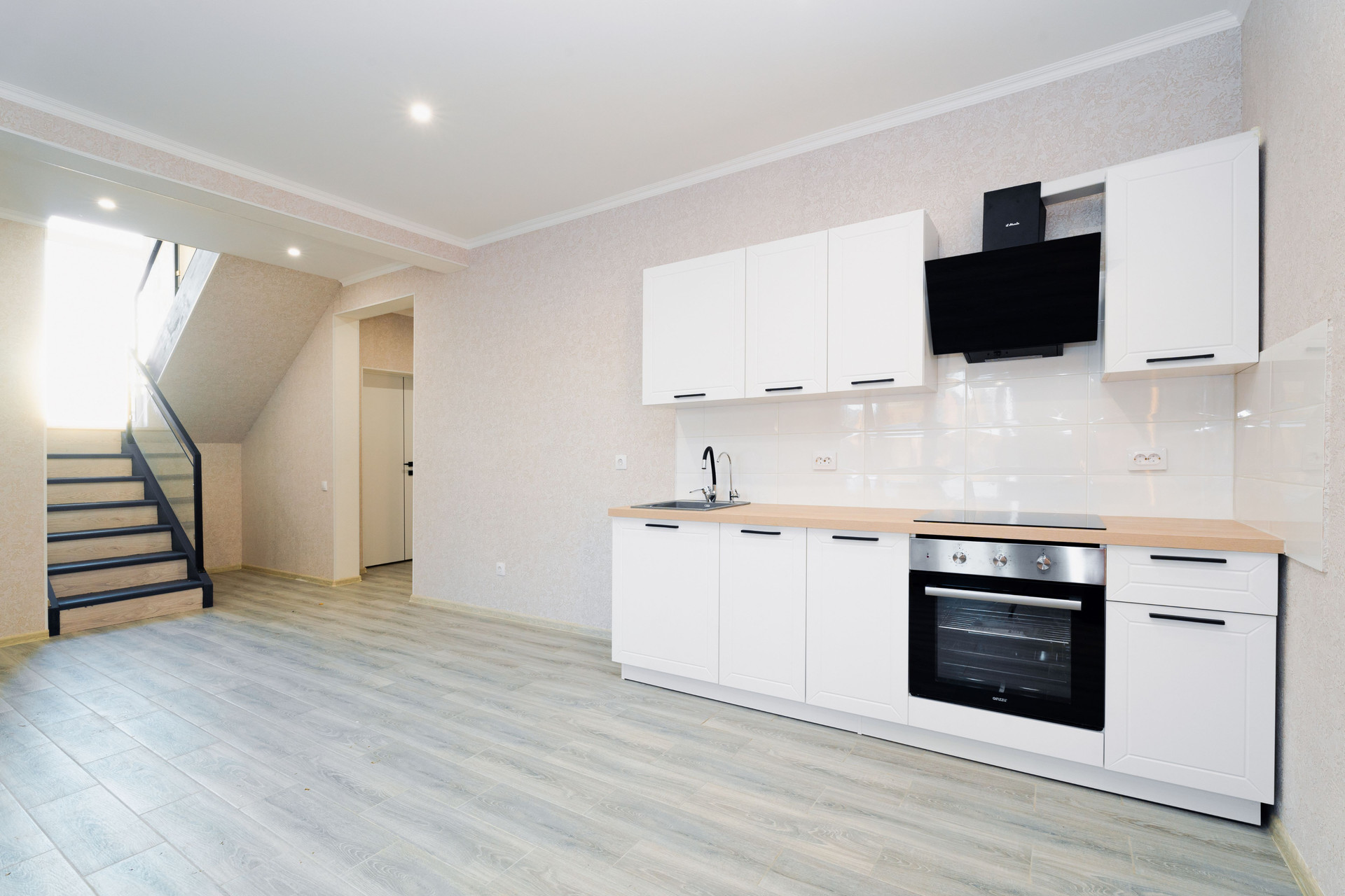 • полностью оборудованная кухня со встроенной варочной панелью и встроенным духовым шкафом