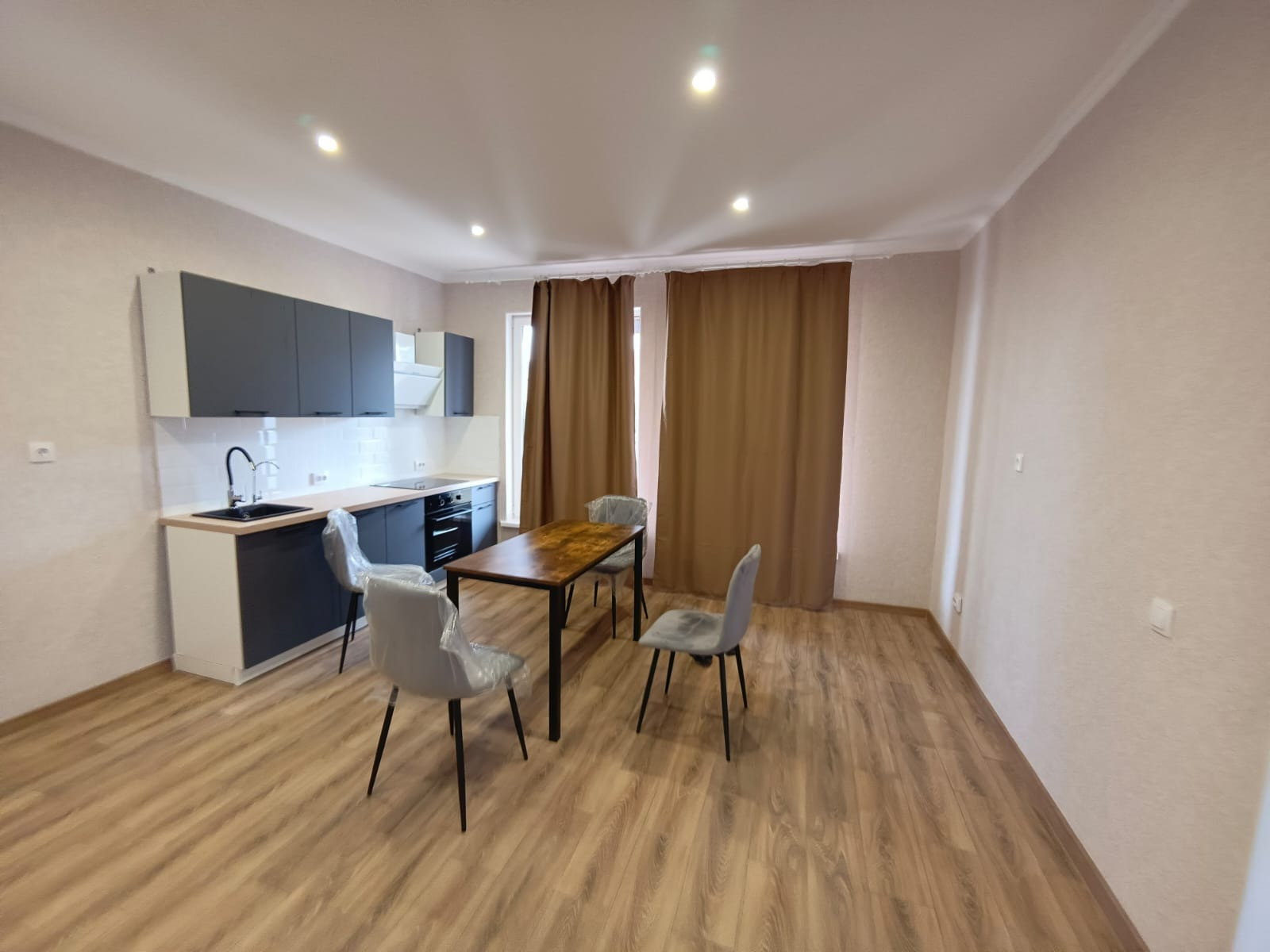• полностью оборудованная кухня со встроенной варочной панелью и встроенным духовым шкафом