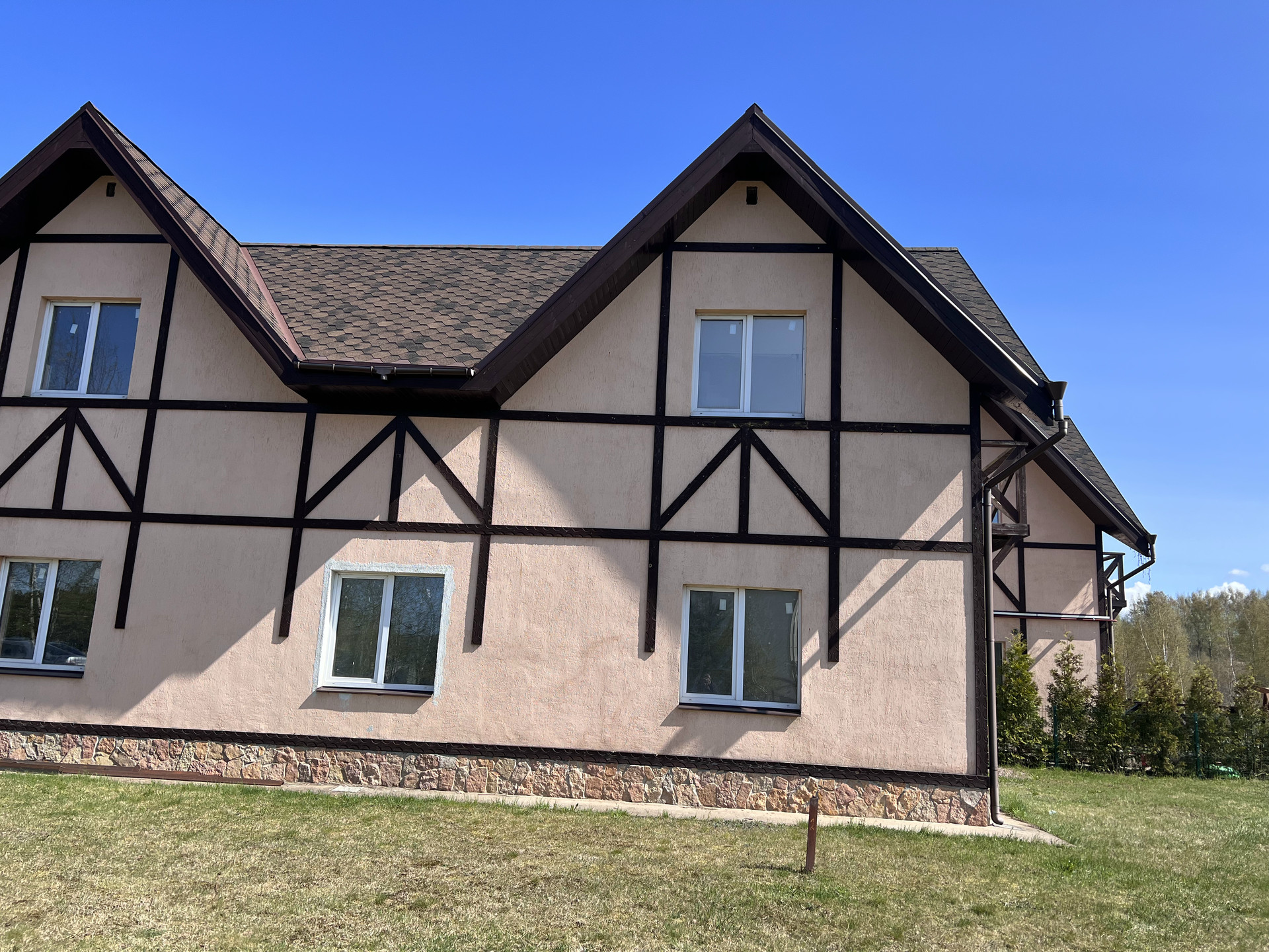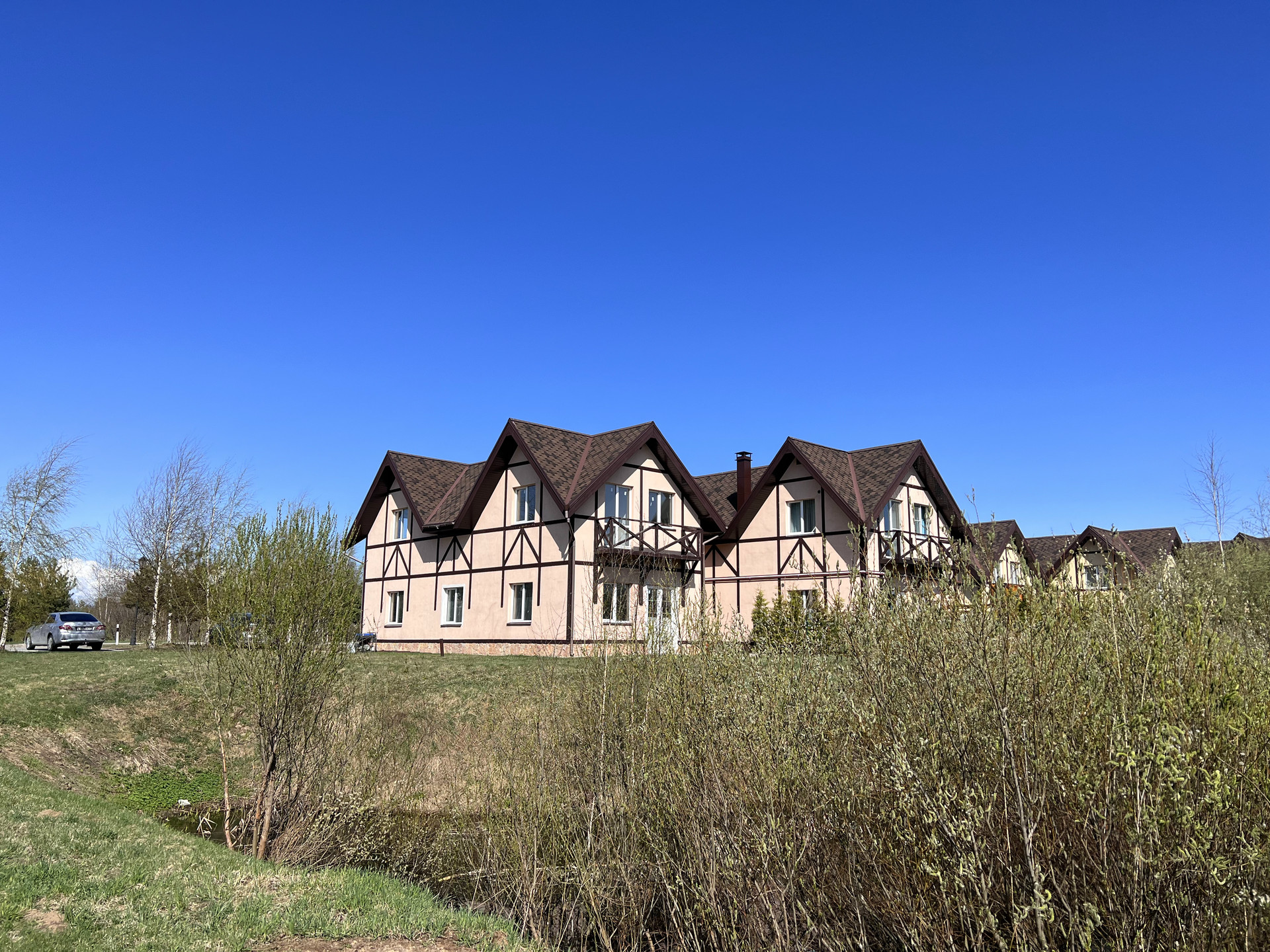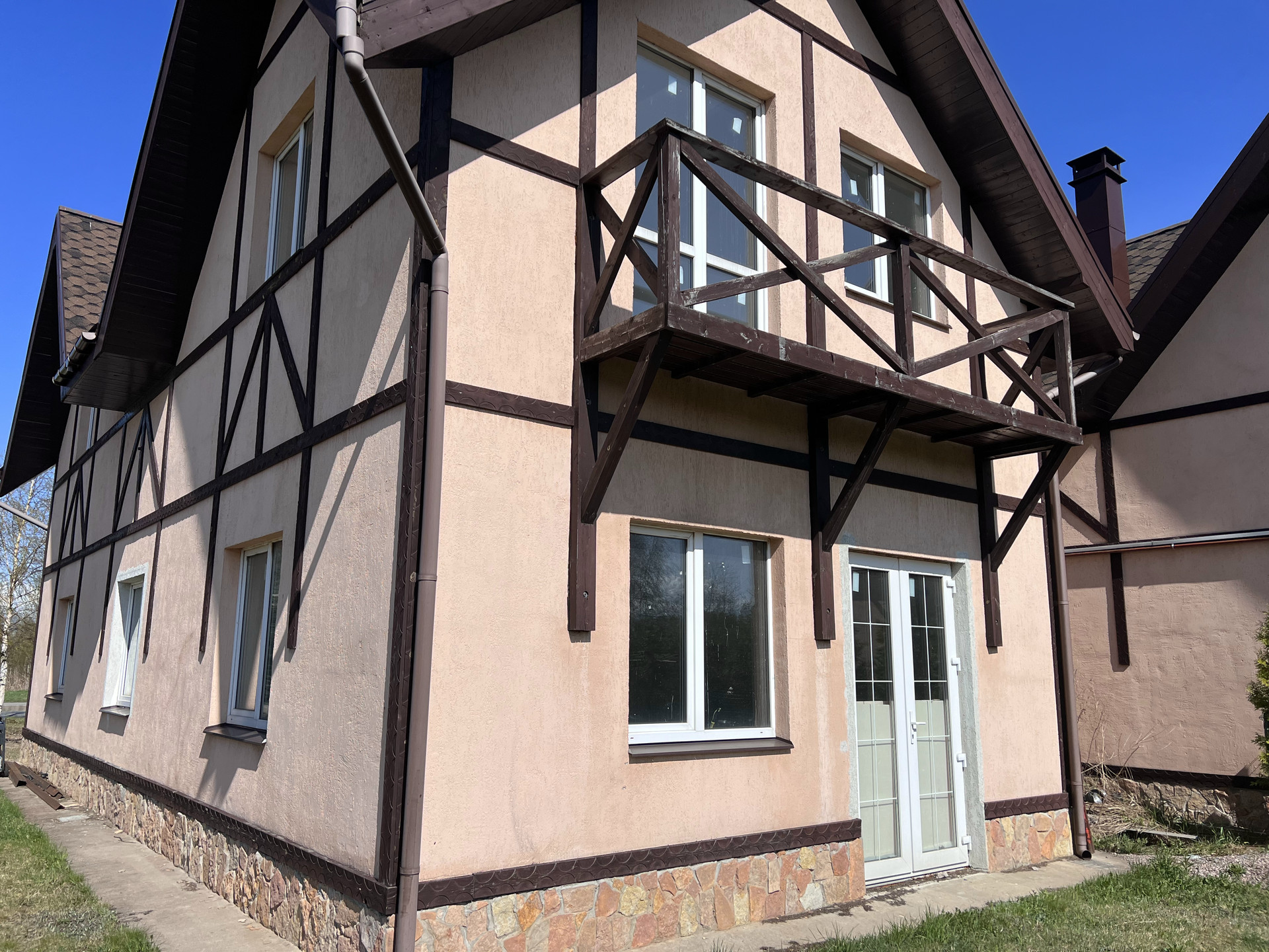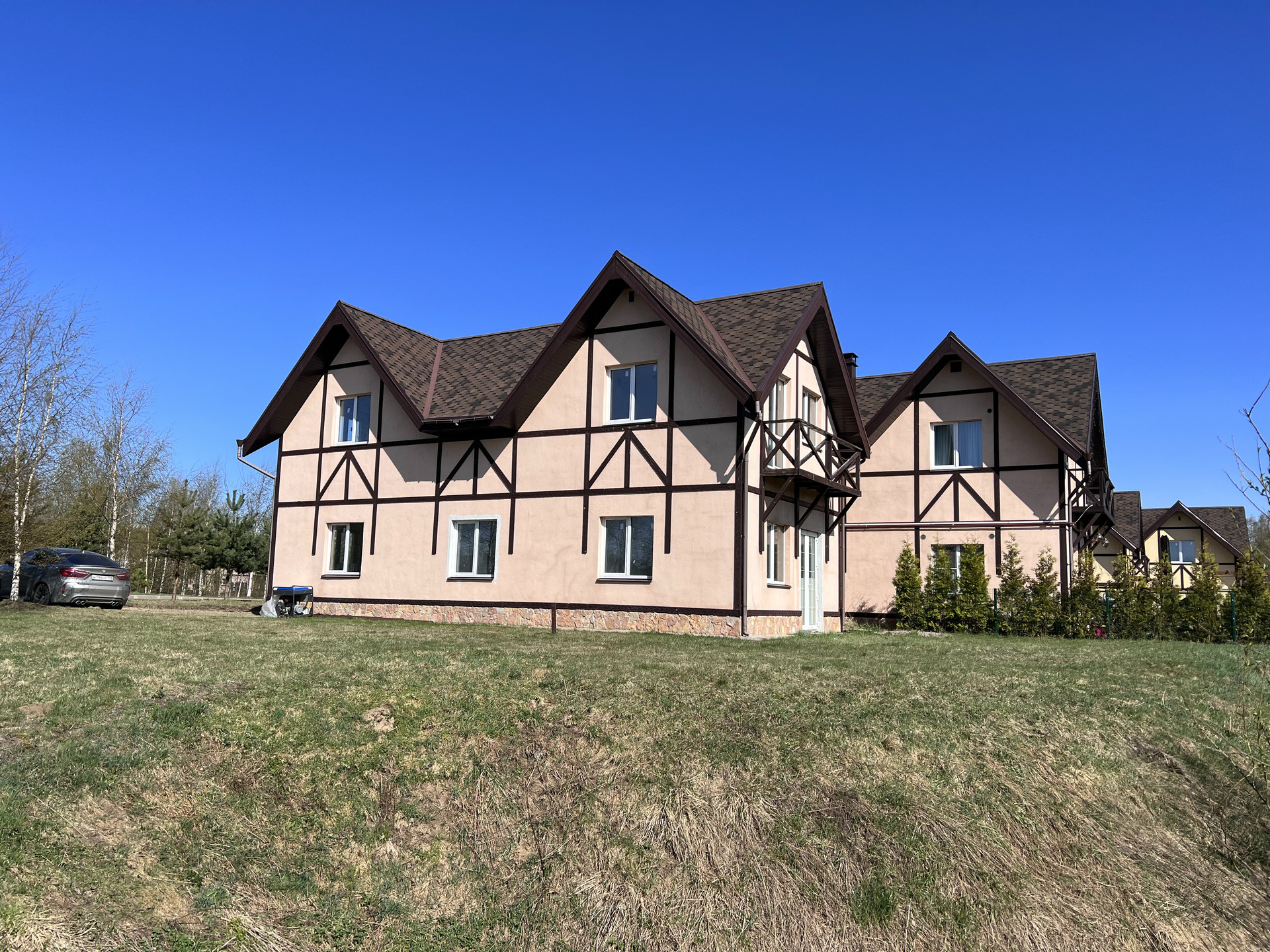Таунхаус в ДНП, 2 этажа,  с незаконченным ремонтом, 4 спальни, 2 санузла, гостиная-кухня, гостевая комната, постирочная, котельная, теплые полы, вентиляция, три входа, парковка, балкон. Вид на озеро.