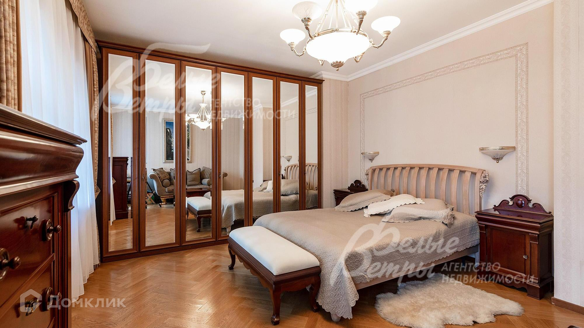 Мебель, оборудование: Дом полностью обставлен мебелью в классическом стиле. Вся корпусная мебель из массива. В гостиной мягкая мебель. В зоне столовой овальный раскладной обеденный стол из массива ценных пород дерева на 10 персон со стульями. В кабинете стол и стеллаж также из массива. В каждой спальне есть двуспальная кровать и большие шкафы для хранения. Везде висят тюль, шторы, картины..