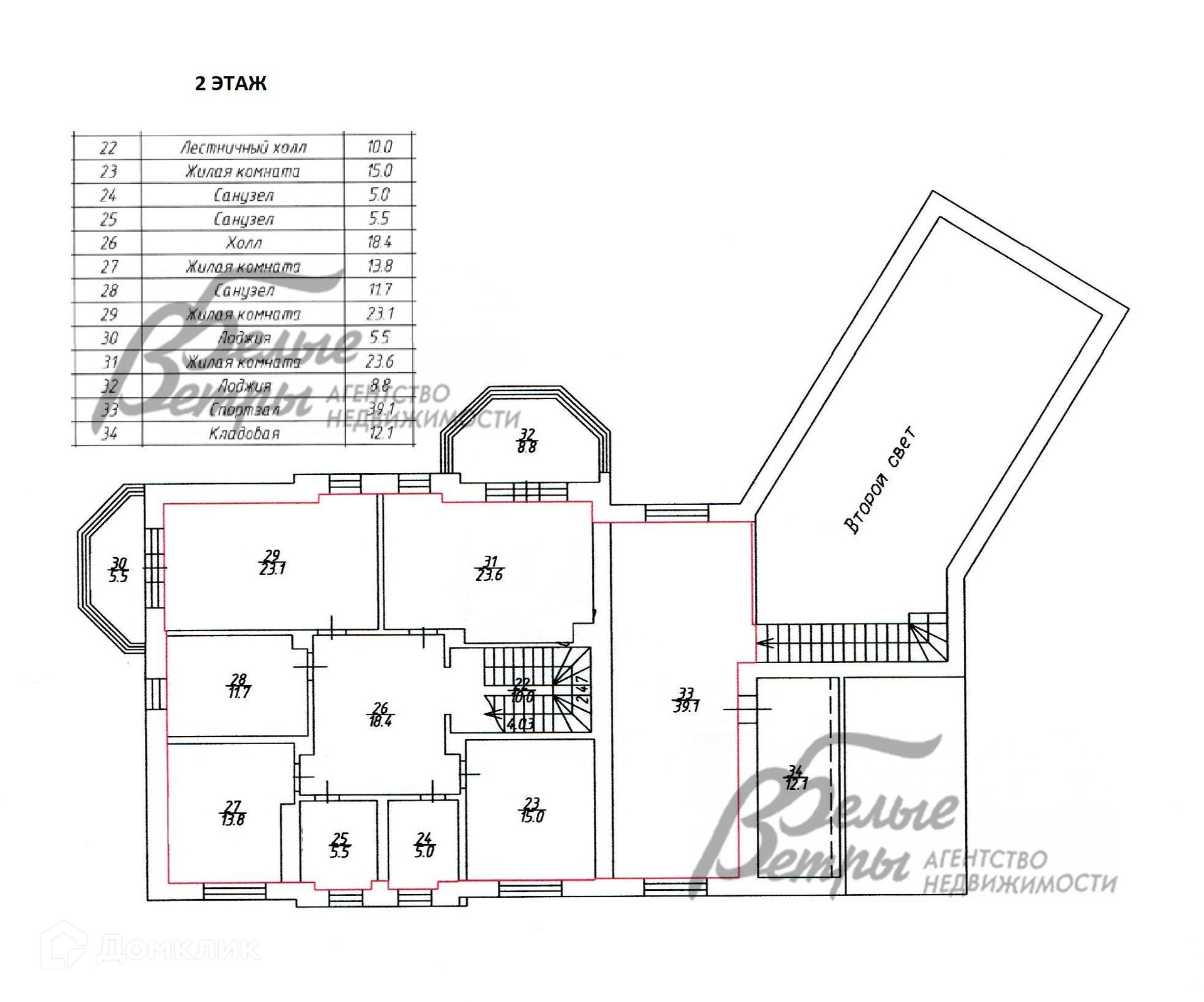 2-ой этаж: холл 18 кв.м, 4 спальни (24 кв.м, 23 кв.м, 15 кв.м, 14 кв.м), 3 санузла (18 кв.м, 6 кв.м, 6 кв.м), кладовая 12 кв.м, 2 застекленные теплые лоджии, спортзал над бассейном 40 кв.м.