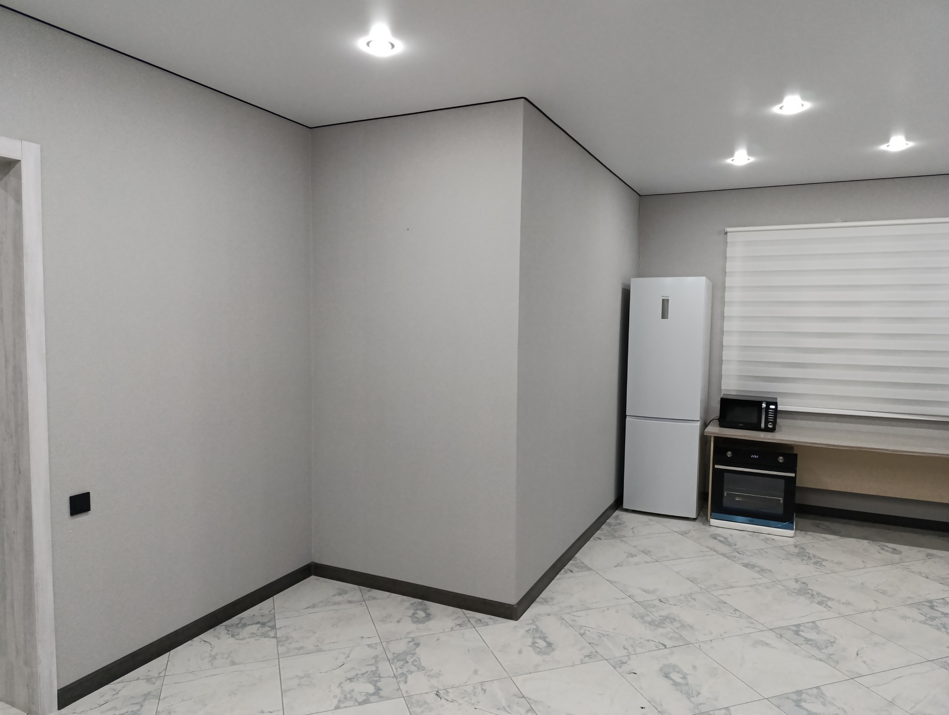 Из мебели можем оставить новый серый диван и новый бежевый шкаф по договорённости