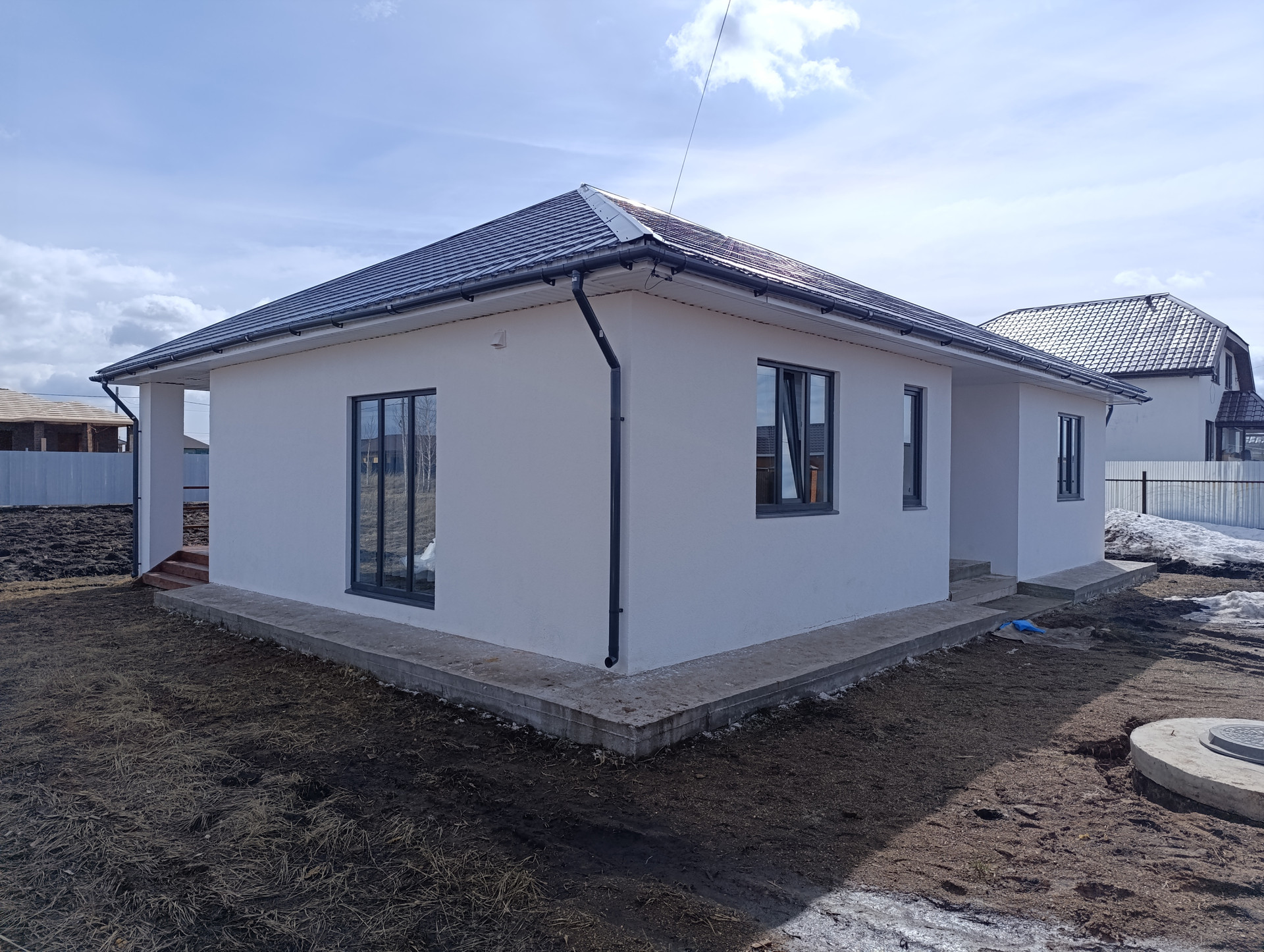 Вокруг дома залита отмостка