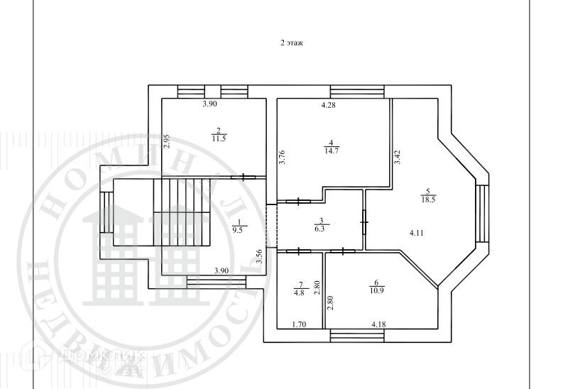 11,3; 14,7; 10,9; 18,5 кв.м (с эркерной стеной и гардеробной), с/у - 4,8 кв.м..