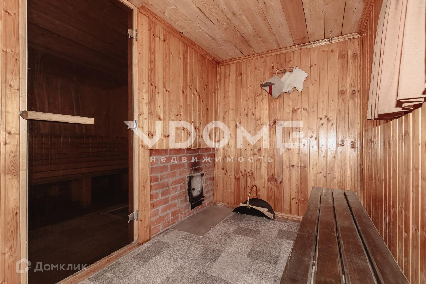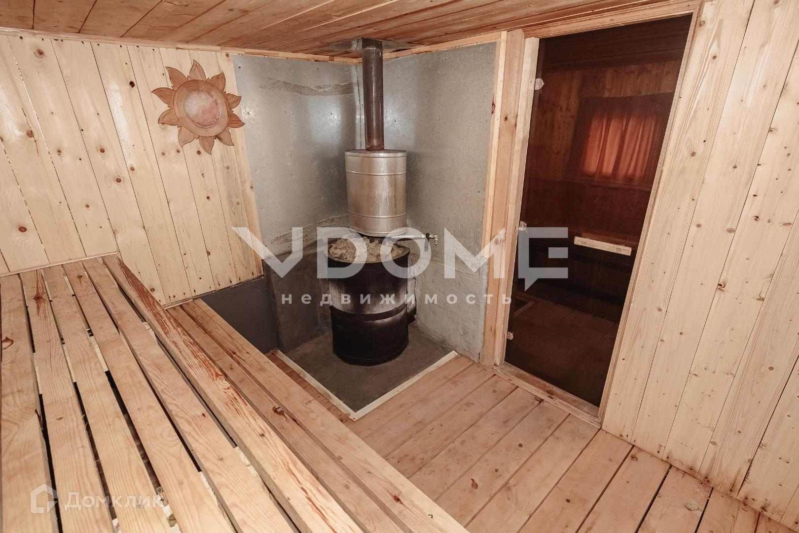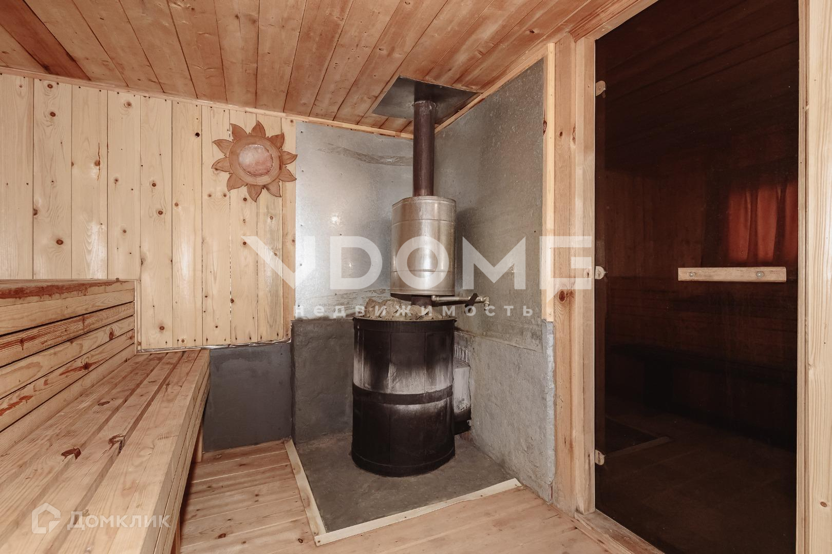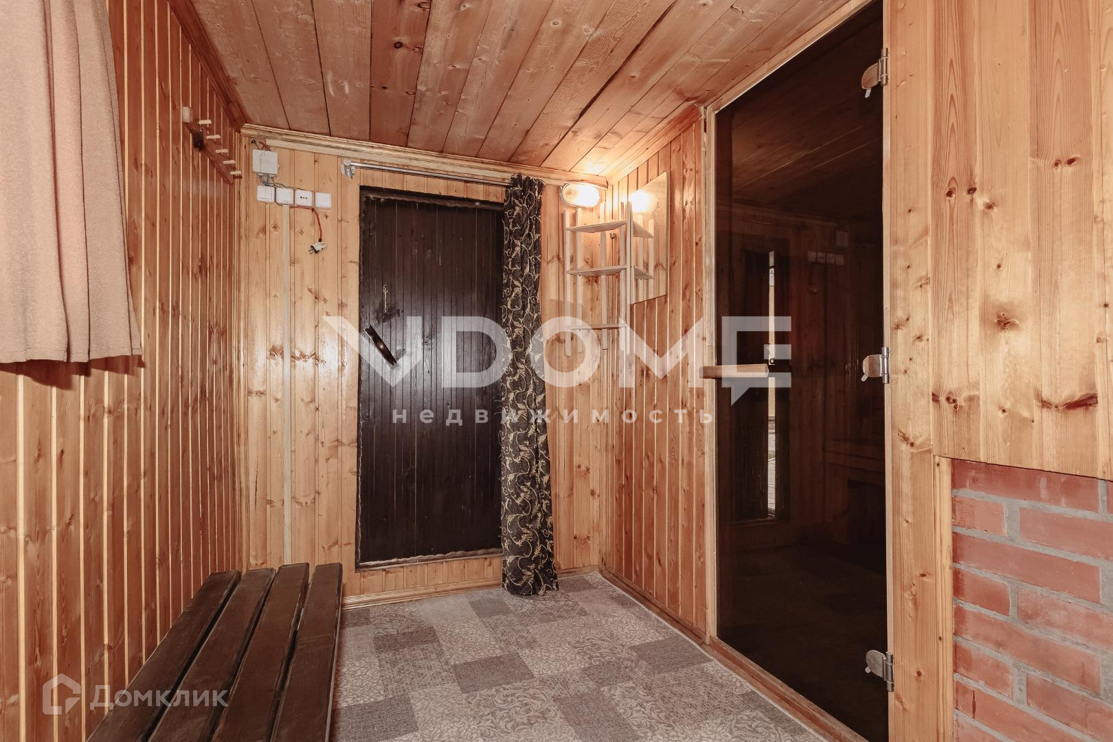 Просторная баня из бруса, с остекленной террасой. Внутри выполнена качественная отделка, стеклянная дверь в баню, на террасе зона отдыха, где установлен дополнительный обогрев.