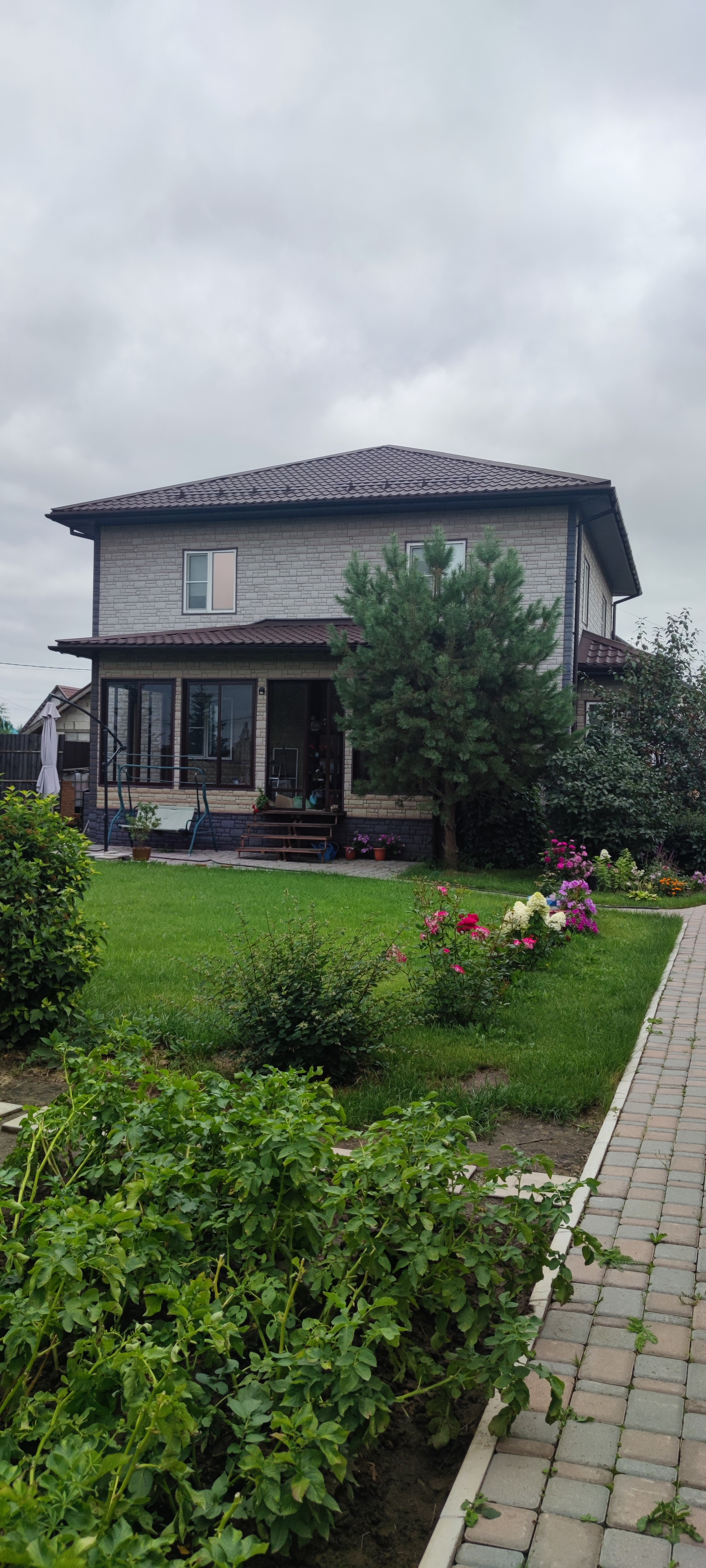 Дом из СИП панелей(имеется подвал), сайдинг Dcke, крыша металлочерепица, фундамент ленточный.