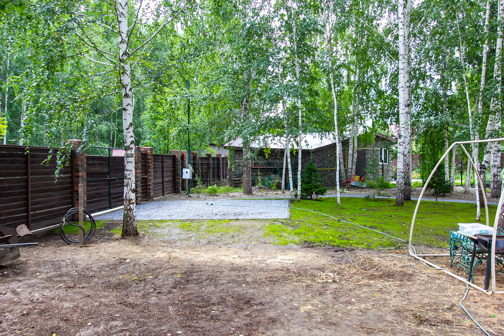 На участке есть электричество, своя скважина, переливной септик, так же можно завести центральное водоснабжение. Выполнено озеленение различными деревьями (ели, кедр, клён канадский, гортензии), произведена химическая очистка от сорняков, отсыпаны дорожки и парковка, засеян газон, произведен монтаж поливочной системы.