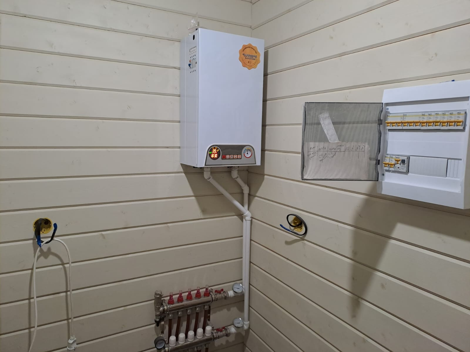 - отопление – электрический котёл, по всему периметру водяные полы,