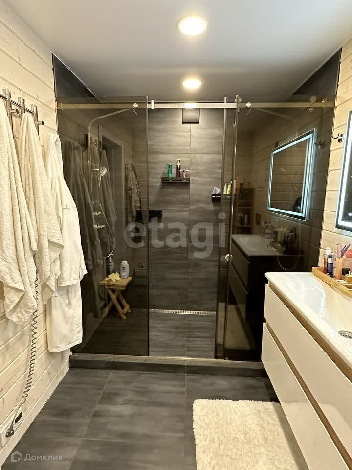 Собственник строил для себя, проект делал сам, все самое лучшее. Продажа в связи с переездом. В доме большая кухня-гостиная, спальня со своим санузлом, второй санузел для гостей, комната гостевая (используется, как огромная гардеробная), антресольный этаж (дети будут в восторге). Две крытые террасы, 18 метров с выходом из гостиной и 16 метров с выходом из спальни и гостиной. Потолок 4,5 метра, не давит. Вся сантехника и мебель недешевая, покупалась не для продажи. Отдельная пристройка для фильтров очистки воды и колонна очистки (утеплена), сарай для колес и инструментов 3х6. На участке молодые деревья, туи в ряд вместо забора, цветы, ягодные кусты. Забора нет! Стоит охранная сигнализация. Отсыпана парковка на две машины. Септик, скважина, фундамент сваи, дом каркасник.