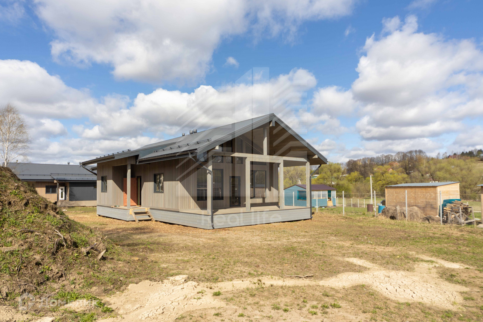 Дом построен по каркасной технологии, с соблюдением всех требований и норм. Очень теплый. Высота потолков в комнатах 3 м, в кухне-гостиной 5м.