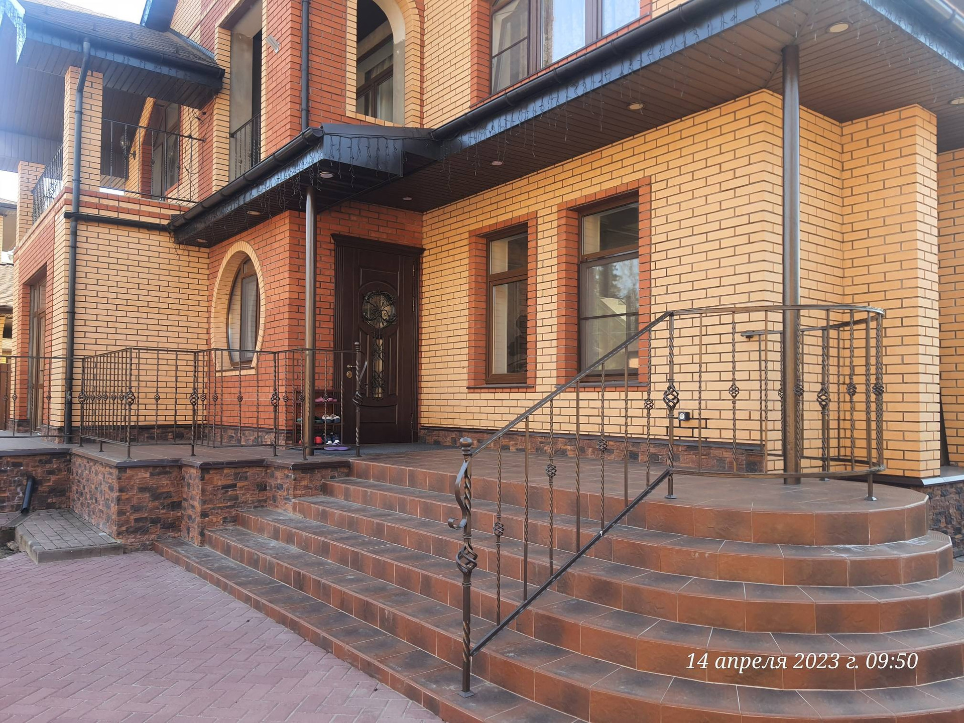 Все дорожки и площадки выложены брусчаткой